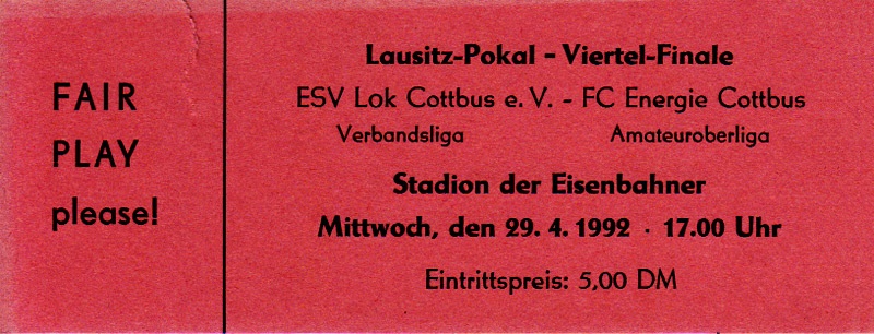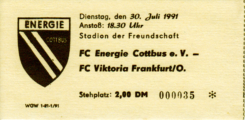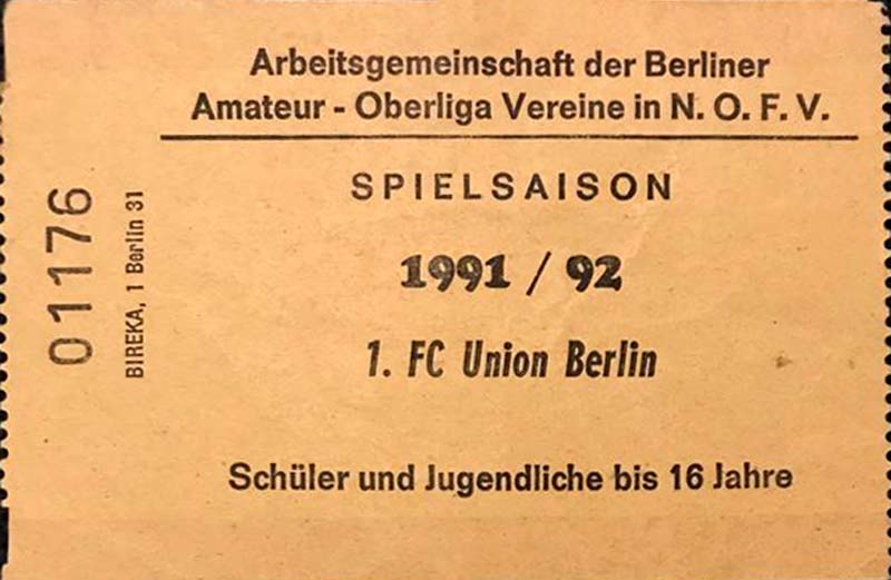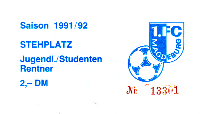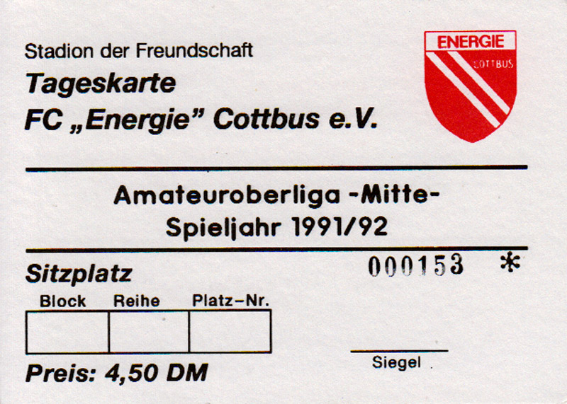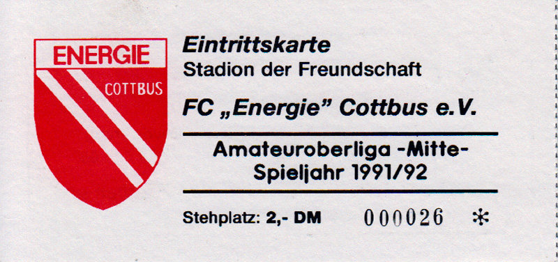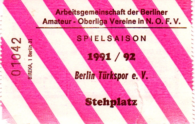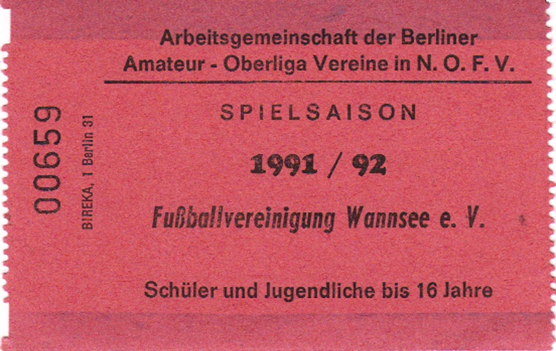 Eintrittskarten der 1. Mannschaft 03.07.1991, Silkeborg IF 1917 (H)06.07.1991, Hammarby IF (H)20.07.1991, ASVŠ Dukla Banská Bystrica (H)30.07.1991, Frankfurter FC Viktoria 91 (H)04.08.1991, SV Lichtenberg 47 (A)10.08.1991, FSV Lok Altmark Stendal (H)17.08.1991, Türkspor Berlin 1965 (A)25.08.1991, Hertha BSC (A.) (H)28.08.1991, FC Anhalt Dessau (A)01.09.1991, BFC Türkiyemspor 1978 (A)08.09.1991, SC Charlottenburg (H)15.09.1991, 1. FC Union Berlin (A)22.09.1991, SV Stahl Thale (H)28.09.1991, 1. FC Magdeburg (A)06.10.1991, SpVgg Blau-Weiß 1890 Berlin (A.) (H)13.10.1991, FSV Glückauf Brieske-Senftenberg (A)27.10.1991, Neuköllner SC Marathon 02 (A)03.11.1991, FV Wannsee (H)10.11.1991, F.C. Hertha 03 Zehlendorf (A)16.11.1991, VfB Lichterfelde 1892 (H)20.11.1991, SC Gatow 1931 (H)24.11.1991, FSV Velten 90 (A)07.12.1991, SV Lichtenberg 47 (H)14.12.1991, FSV Lok Altmark Stendal (A)02.02.1992, BSV Spindlersfeld (H)16.02.1992, Türkspor Berlin 1965 (H)23.02.1992, Hertha BSC (A.) (A)01.03.1992, FC Anhalt Dessau (H)08.03.1992, BFC Türkiyemspor 1978 (H)21.03.1992, 1. FC Union Berlin (H)05.04.1992, 1. FC Magdeburg (H)08.04.1992, SpVgg Blau-Weiß 1890 Berlin (A.) (A)12.04.1992, FSV Glückauf Brieske-Senftenberg (H)17.04.1992, SC Gatow 1931 (A)20.04.1992, Neuköllner SC Marathon 02 (H)26.04.1992, FV Wannsee (A)29.04.1992, ESV Lokomotive Cottbus (A)01.05.1992, SC Charlottenburg (A)03.05.1992, VfB Lichterfelde 1892 (A)06.05.1992, F.C. Hertha 03 Zehlendorf (H)10.05.1992, FSV Velten 90 (H)13.05.1992, SV Thale 04 (A)17.05.1992, BSV Spindlersfeld (A)