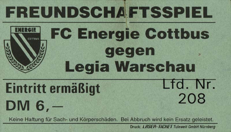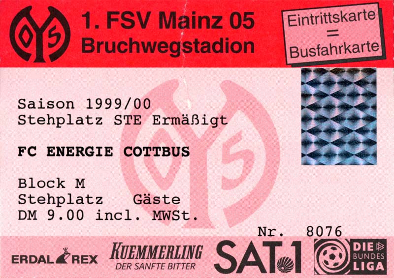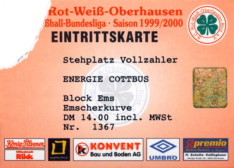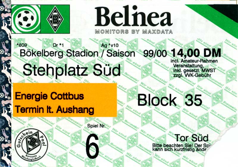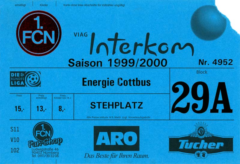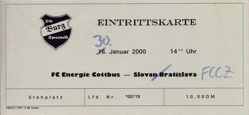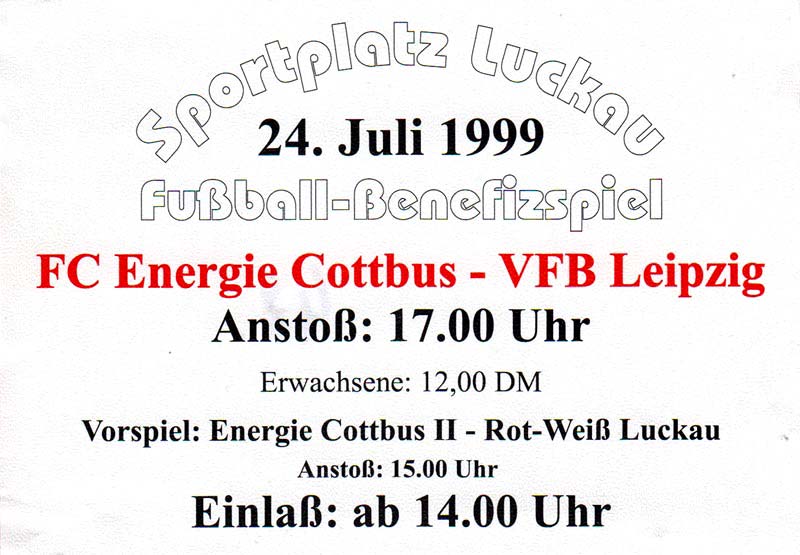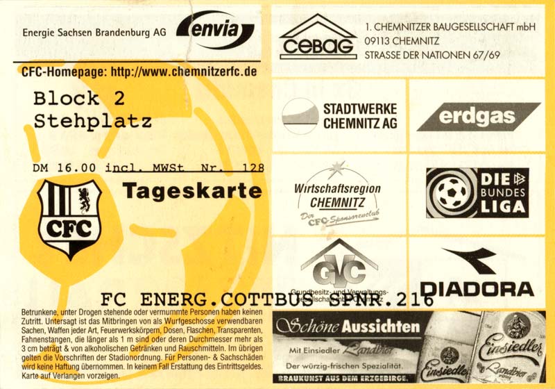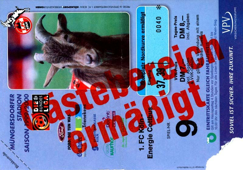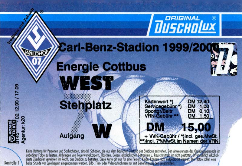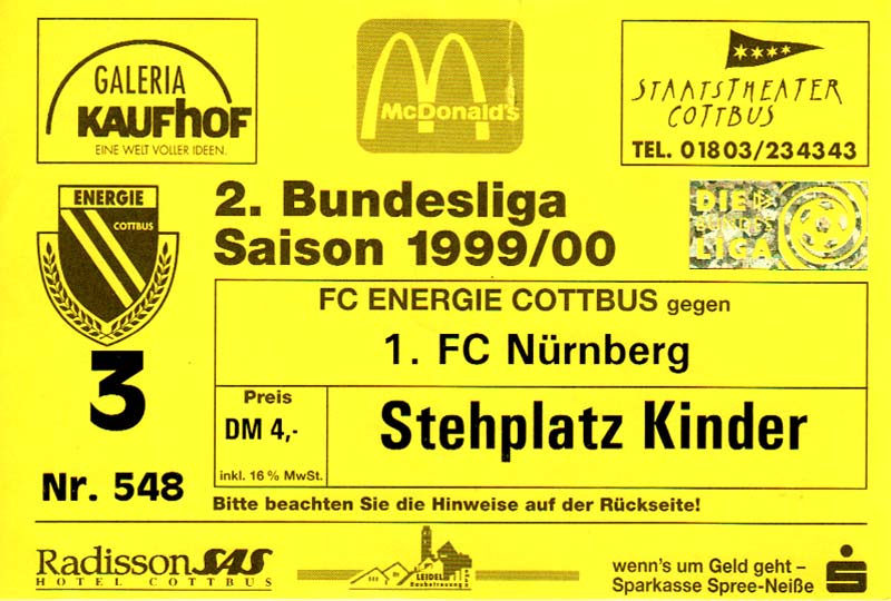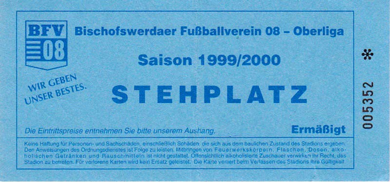 Eintrittskarten der 1. Mannschaft 24.07.1999, VfB Leipzig (H)27.07.1999, BSV Cottbus-Ost (A)28.07.1999, Dresdner SC 1898 (N)31.07.1999, VfL Osnabrück 1899 (A)06.08.1999, FC Gütersloh (A)13.08.1999, S.C. Fortuna Köln (H)22.08.1999, SC Rot-Weiß Oberhausen 1904 (A)29.08.1999, 1. FSV Mainz 05 (H)12.09.1999, SpVgg Greuther Fürth (A)19.09.1999, 1. FC Nürnberg (H)26.09.1999, SV Stuttgarter Kickers (A)03.10.1999, Chemnitzer FC (H)07.10.1999, Bischofswerdaer FV 08 (A)13.10.1999, FC Schalke 04 (H)16.10.1999, VfL Bochum 1848 (A)22.10.1999, Hannover 96 (H)30.10.1999, Tennis Borussia Berlin (A)06.11.1999, Karlsruher SC (H)12.11.1999, WKP Lech Poznań (H)20.11.1999, Borussia VfL 1900 Mönchengladbach (A)26.11.1999, TSV Alemannia Aachen (H)04.12.1999, SV Waldhof Mannheim 07 (A)12.12.1999, FC St. Pauli 1910 (A)15.12.1999, Offenbacher FC Kickers 1901 (H)18.12.1999, 1. FC Köln (A)14.01.2000, FC Sachsen Leipzig (H)30.01.2000, FC Carl Zeiss Jena (H)06.02.2000, KP Legia Warszawa (H)13.02.2000, S.C. Fortuna Köln (A)21.02.2000, SC Rot-Weiß Oberhausen 1904 (H)26.02.2000, 1. FSV Mainz 05 (A)03.03.2000, SpVgg Greuther Fürth (H)10.03.2000, 1. FC Nürnberg (A)19.03.2000, SV Stuttgarter Kickers (H)27.03.2000, Chemnitzer FC (A)03.04.2000, VfL Bochum 1848 (H)07.04.2000, Hannover 96 (A)15.04.2000, Tennis Borussia Berlin (H)23.04.2000, Karlsruher SC (A)01.05.2000, Borussia VfL 1900 Mönchengladbach (H)05.05.2000, TSV Alemannia Aachen (A)14.05.2000, SV Waldhof Mannheim 07 (H)18.05.2000, FC St. Pauli 1910 (H)21.05.2000, Offenbacher FC Kickers 1901 (A)26.05.2000, 1. FC Köln (H)