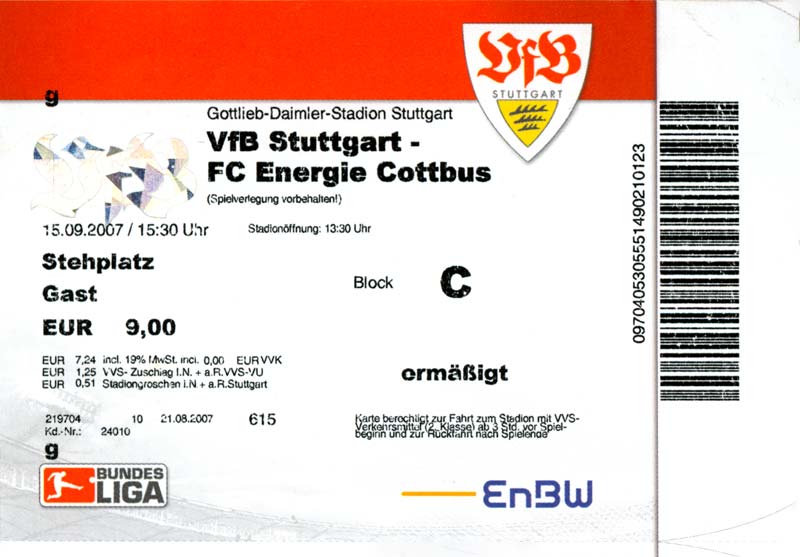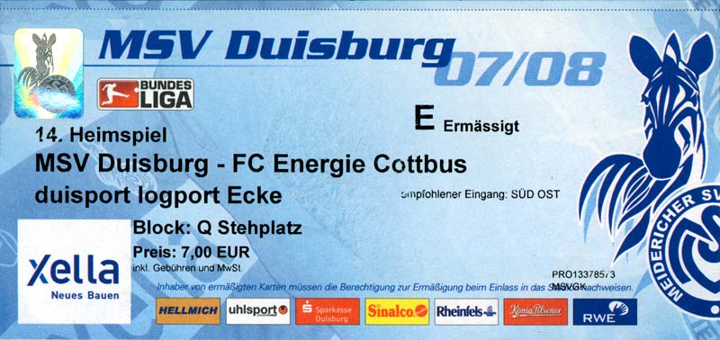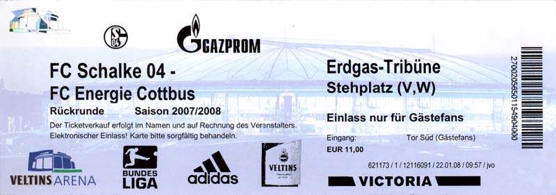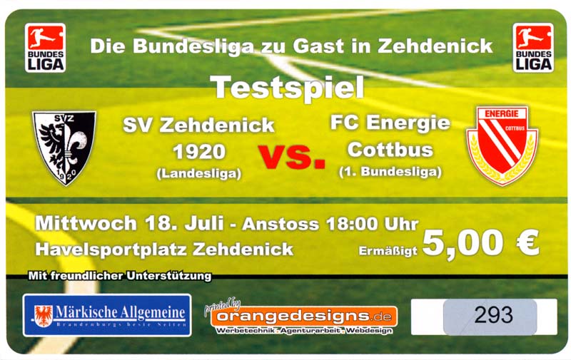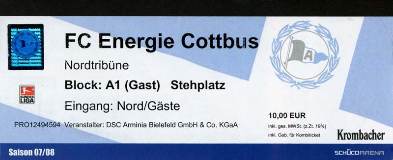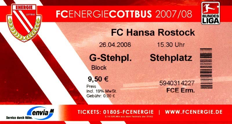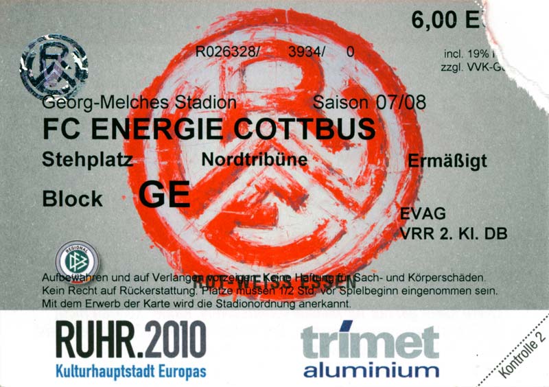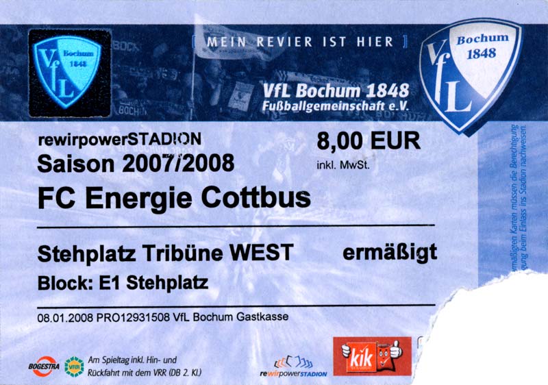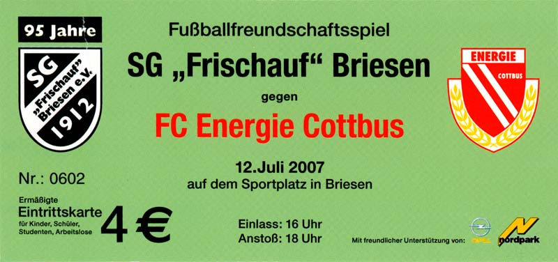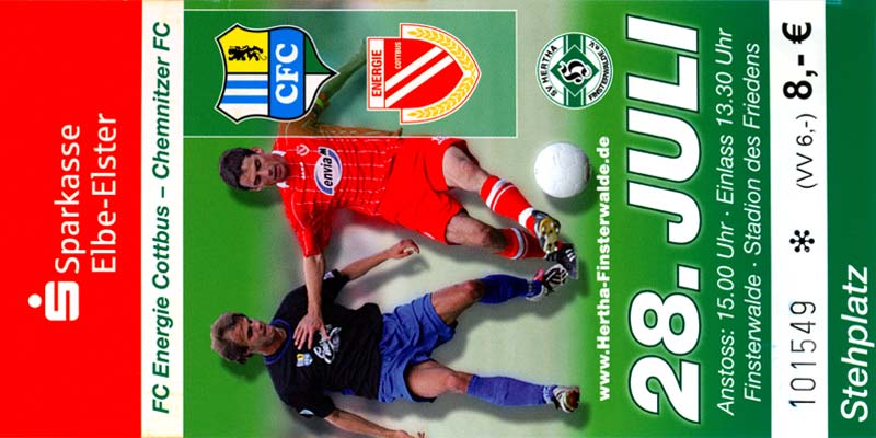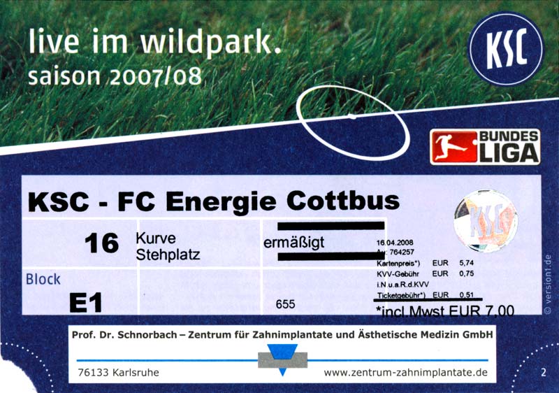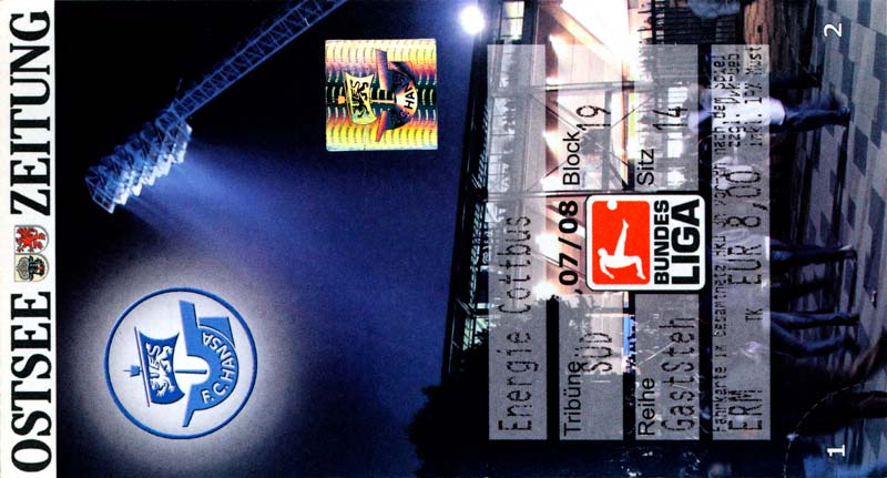 Eintrittskarten der 1. Mannschaft 07.07.2007, SV Empor Mühlberg (A)10.07.2007, 1. FC Union Berlin (N)12.07.2007, SG Frischauf Briesen 1912 (A)14.07.2007, FC Baník Ostrava (H)18.07.2007, SV Zehdenick 1920 (A)21.07.2007, Bohemians 1905 (N)23.07.2007, Leeds United AFC (N)28.07.2007, Chemnitzer FC (N)04.08.2007, Rot-Weiss Essen (A)11.08.2007, Bayer 04 Leverkusen (A)19.08.2007, VfL Bochum 1848 (H)25.08.2007, BV Borussia 09 Dortmund (A)01.09.2007, 1. FC Nürnberg (H)15.09.2007, VfB Stuttgart 1893 (A)22.09.2007, VfL Wolfsburg (H)26.09.2007, FC Bayern München (A)30.09.2007, Eintracht Frankfurt (H)02.10.2007, BSV Guben-Nord (A)06.10.2007, Hertha BSC (A)12.10.2007, FC Viktoria Plzeň (H)19.10.2007, MSV Duisburg (H)27.10.2007, DSC Arminia Bielefeld (A)02.11.2007, FC Schalke 04 (H)05.11.2007, MSV Hanse Frankfurt (Oder) (A)10.11.2007, F.C. Hansa Rostock (A)19.11.2007, SV Hertha Finsterwalde (A)24.11.2007, SV Werder Bremen (H)01.12.2007, Karlsruher SC (H)08.12.2007, Hamburger SV (A)14.12.2007, Hannover 96 (H)26.01.2008, FC Erzgebirge Aue (H)29.01.2008, SG Blau-Gelb Laubsdorf (A)02.02.2008, Bayer 04 Leverkusen (H)09.02.2008, VfL Bochum 1848 (A)16.02.2008, BV Borussia 09 Dortmund (H)24.02.2008, 1. FC Nürnberg (A)04.03.2008, SC Borea Dresden (N)08.03.2008, VfL Wolfsburg (A)11.03.2008, VfB Stuttgart 1893 (H)15.03.2008, FC Bayern München (H)20.03.2008, Eintracht Frankfurt (A)25.03.2008, Frankfurter FC Viktoria 91 (A)30.03.2008, Hertha BSC (H)04.04.2008, MSV Duisburg (A)12.04.2008, DSC Arminia Bielefeld (H)15.04.2008, FC Schalke 04 (A)18.04.2008, FC Lausitz Hoyerswerda (A)26.04.2008, F.C. Hansa Rostock (H)03.05.2008, SV Werder Bremen (A)06.05.2008, Karlsruher SC (A)10.05.2008, Hamburger SV (H)17.05.2008, Hannover 96 (A)20.05.2008, FSV 63 Luckenwalde (A)