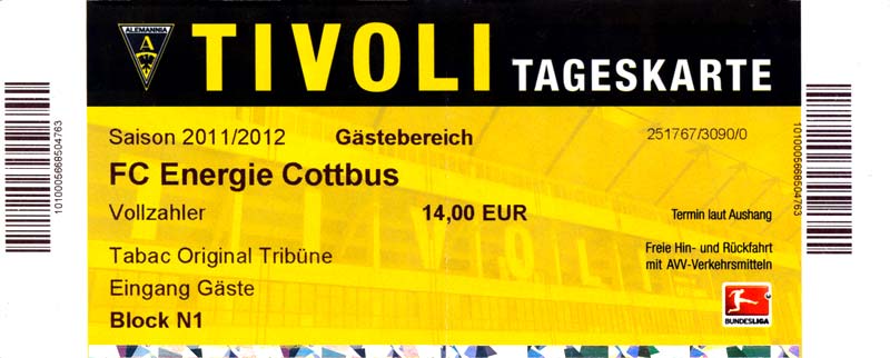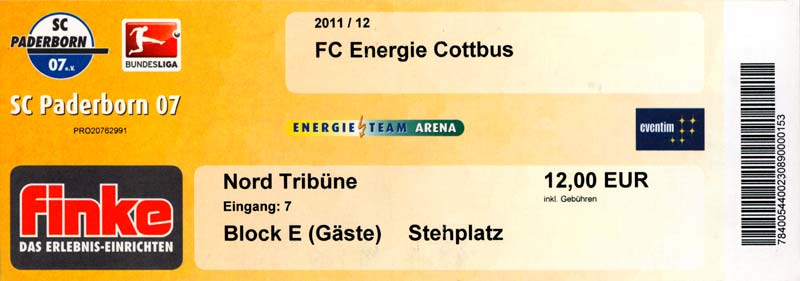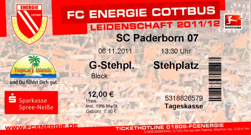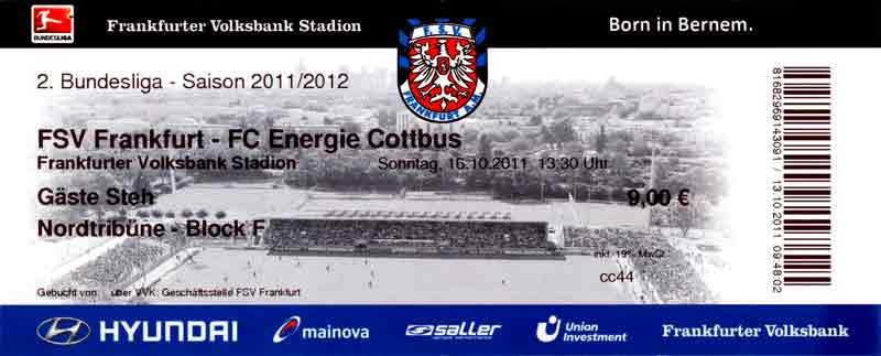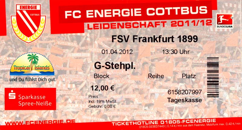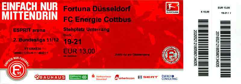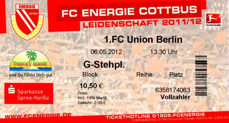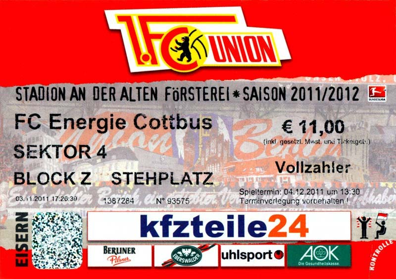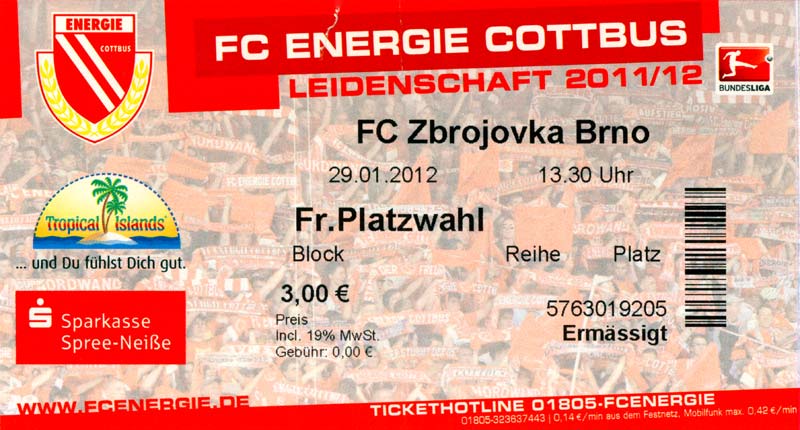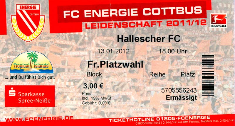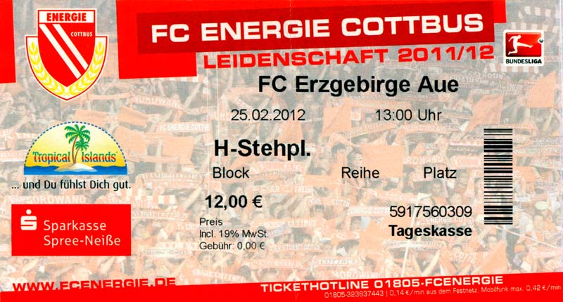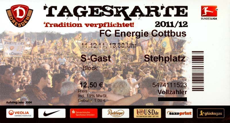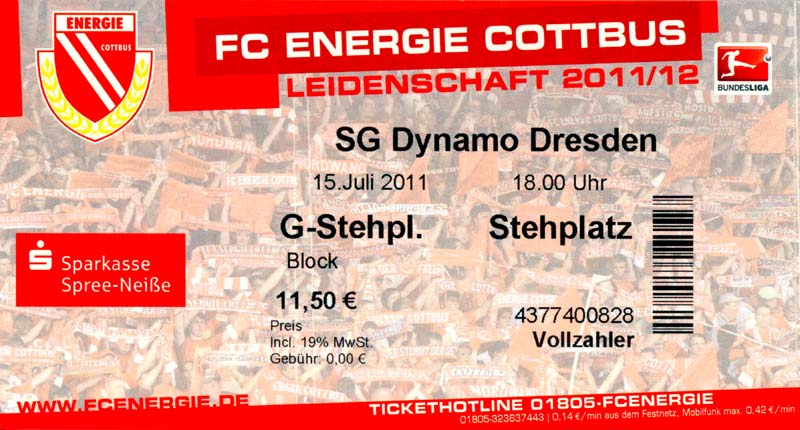 Eintrittskarten der 1. Mannschaft 22.06.2011, SV Rot-Weiß Bad Muskau (A)24.06.2011, NFV Gelb-Weiß Görlitz 09 (A)05.07.2011, FK Teplice (H)09.07.2011, FK Dukla Praha (H)15.07.2011, SG Dynamo Dresden (H)22.07.2011, MSV Duisburg (A)30.07.2011, Kieler S.V. Holstein 1900 (A)06.08.2011, TSV 1860 München (H)13.08.2011, TSV Alemannia Aachen (A)21.08.2011, Karlsruher SC (H)29.08.2011, FC Erzgebirge Aue (A)01.09.2011, Offenbacher FC Kickers 1901 (H)10.09.2011, Eintracht Frankfurt (H)17.09.2011, TSV Eintracht Braunschweig (A)24.09.2011, TSV Fortuna Düsseldorf (A)01.10.2011, FC St. Pauli 1910 (H)16.10.2011, FSV Frankfurt 1899 (A)22.10.2011, SpVgg Greuther Fürth 1903 (H)28.10.2011, F.C. Hansa Rostock (A)06.11.2011, SC Paderborn 07 (H)21.11.2011, VfL Bochum 1848 (A)27.11.2011, FC Ingolstadt 04 (H)02.12.2011, 1. FC Union Berlin (A)11.12.2011, SG Dynamo Dresden (A)18.12.2011, MSV Duisburg (H)13.01.2012, Hallescher FC (H)29.01.2012, FC Zbrojovka Brno (H)06.02.2012, TSV 1860 München (A)10.02.2012, TSV Alemannia Aachen (H)17.02.2012, Karlsruher SC (A)25.02.2012, FC Erzgebirge Aue (H)04.03.2012, Eintracht Frankfurt (A)11.03.2012, TSV Eintracht Braunschweig (H)19.03.2012, TSV Fortuna Düsseldorf (H)25.03.2012, FC St. Pauli 1910 (A)01.04.2012, FSV Frankfurt 1899 (H)05.04.2012, SpVgg Greuther Fürth 1903 (A)10.04.2012, F.C. Hansa Rostock (H)15.04.2012, SC Paderborn 07 (A)20.04.2012, VfL Bochum 1848 (H)29.04.2012, FC Ingolstadt 04 (A)06.05.2012, 1. FC Union Berlin (H)09.05.2012, SV Grün-Weiß Lübben (A)