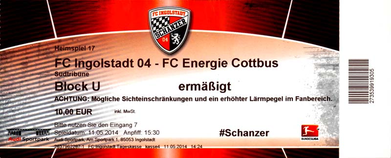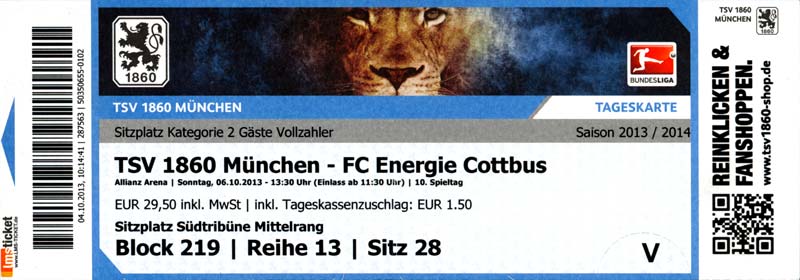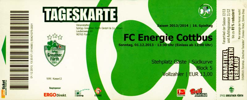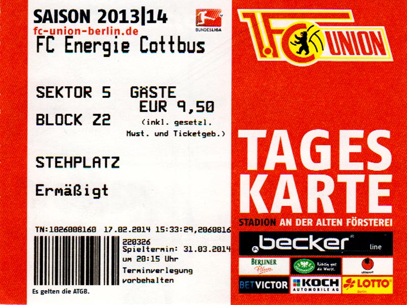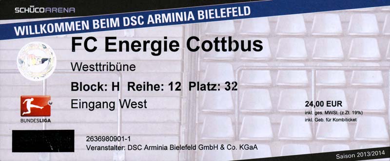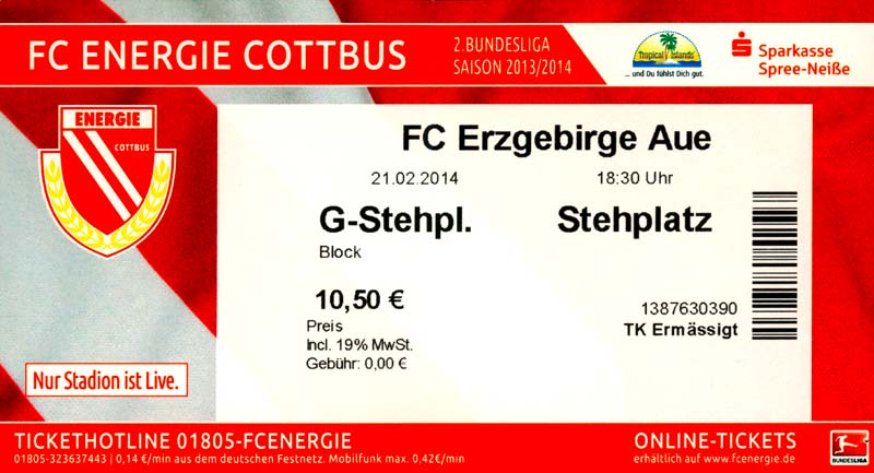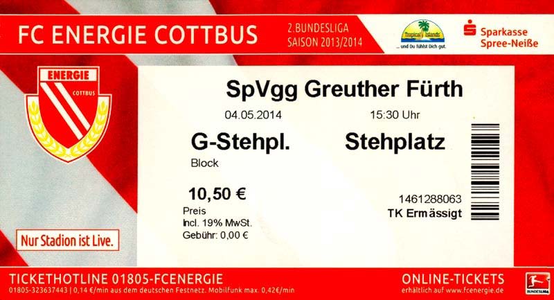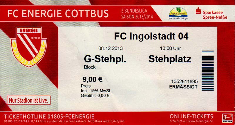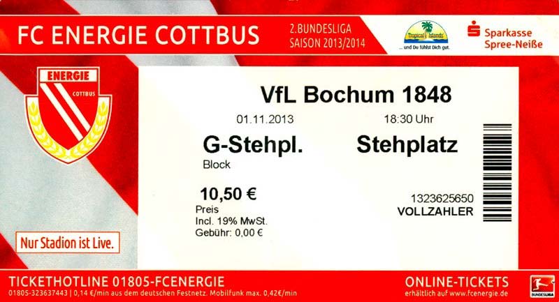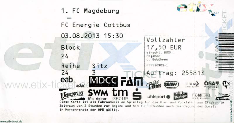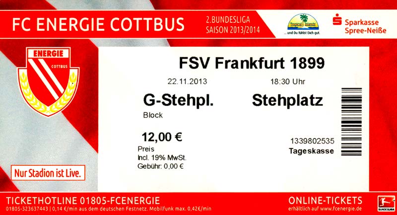 Eintrittskarten der 1. Mannschaft 23.06.2013, Müllroser SV 1898 (A)12.07.2013, Dundee United FC (H)17.07.2013, FC Bad Liebenwerda (A)22.07.2013, TSV Fortuna Düsseldorf (A)28.07.2013, SC Paderborn 07 (H)03.08.2013, 1. FC Magdeburg (A)11.08.2013, SV Sandhausen 1916 (A)18.08.2013, VfR Aalen 1921 (H)23.08.2013, FC Erzgebirge Aue (A)02.09.2013, 1. FC Kaiserslautern (A)07.09.2013, Kreisauswahl Nordsachsen (A)16.09.2013, 1. FC Köln (H)20.09.2013, Karlsruher SC (A)24.09.2013, TSG 1899 Hoffenheim (A)27.09.2013, DSC Arminia Bielefeld (H)06.10.2013, TSV 1860 München (A)11.10.2013, FSV Glückauf Brieske-Senftenberg (A)18.10.2013, 1. FC Union Berlin (H)27.10.2013, SG Dynamo Dresden (A)01.11.2013, VfL Bochum 1848 (H)11.11.2013, FC St. Pauli 1910 (A)16.11.2013, Kolkwitzer SV 1896 (A)22.11.2013, FSV Frankfurt 1899 (H)01.12.2013, SpVgg Greuther Fürth 1903 (A)08.12.2013, FC Ingolstadt 04 (H)14.12.2013, TSV Fortuna Düsseldorf (H)22.12.2013, SC Paderborn 07 (A)15.01.2014, Berliner AK 07 (H)31.01.2014, MKS Miedź Legnica (H)07.02.2014, SV Sandhausen 1916 (H)16.02.2014, VfR Aalen 1921 (A)21.02.2014, FC Erzgebirge Aue (H)28.02.2014, 1. FC Kaiserslautern (H)07.03.2014, 1. FC Köln (A)15.03.2014, Karlsruher SC (H)23.03.2014, DSC Arminia Bielefeld (A)26.03.2014, TSV 1860 München (H)31.03.2014, 1. FC Union Berlin (A)04.04.2014, SG Dynamo Dresden (H)13.04.2014, VfL Bochum 1848 (A)17.04.2014, FC St. Pauli 1910 (H)26.04.2014, FSV Frankfurt 1899 (A)04.05.2014, SpVgg Greuther Fürth 1903 (H)11.05.2014, FC Ingolstadt 04 (A)