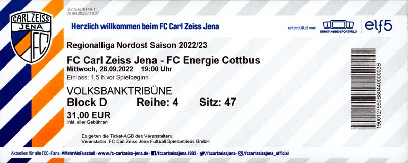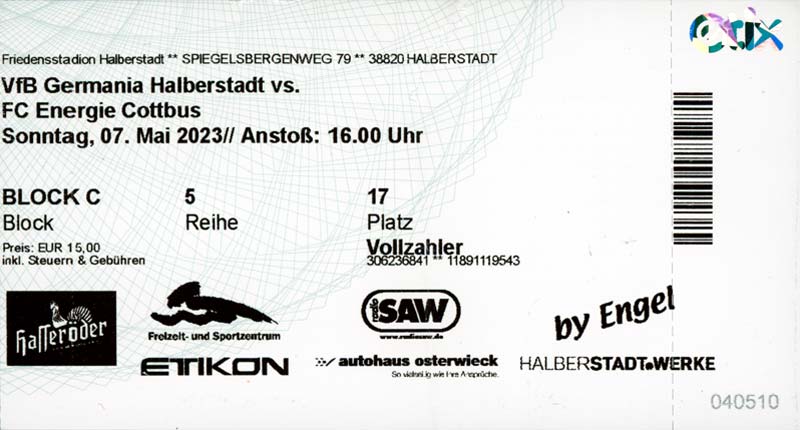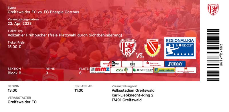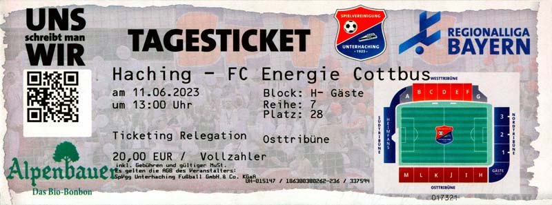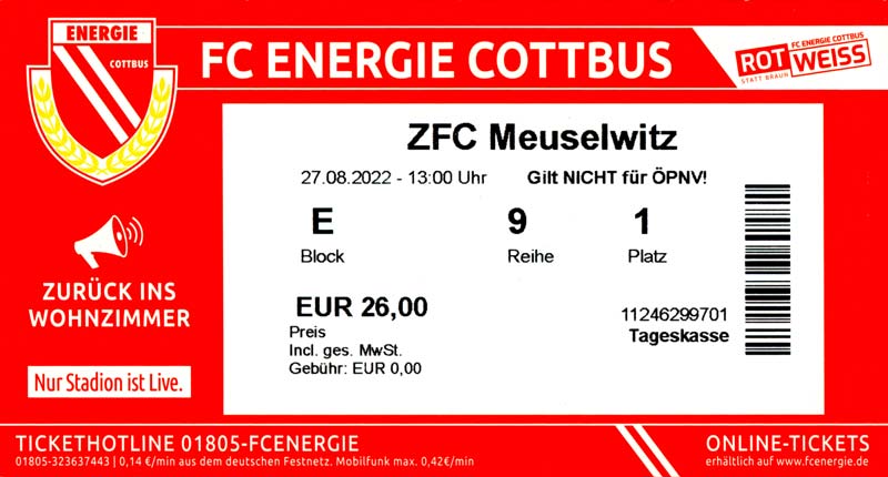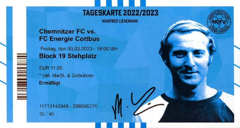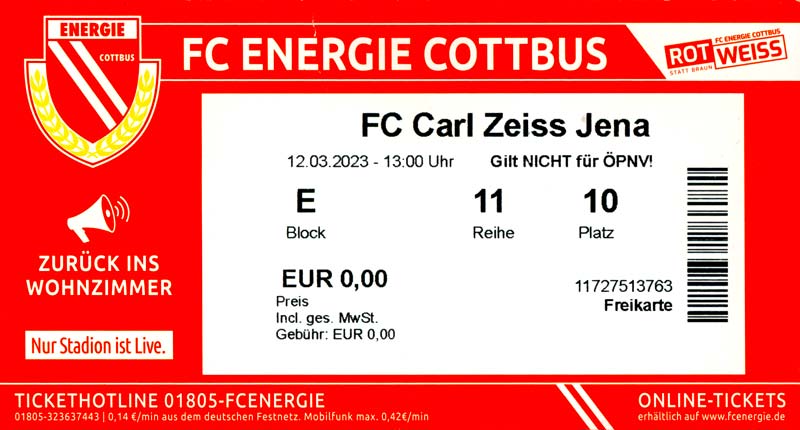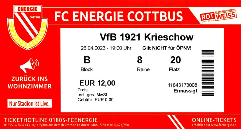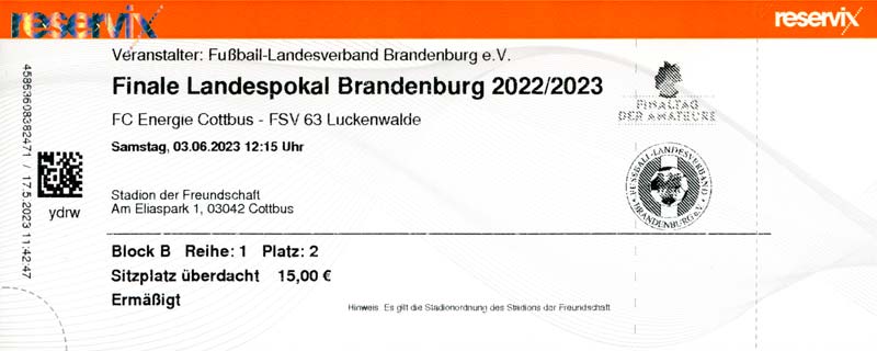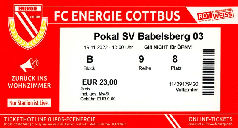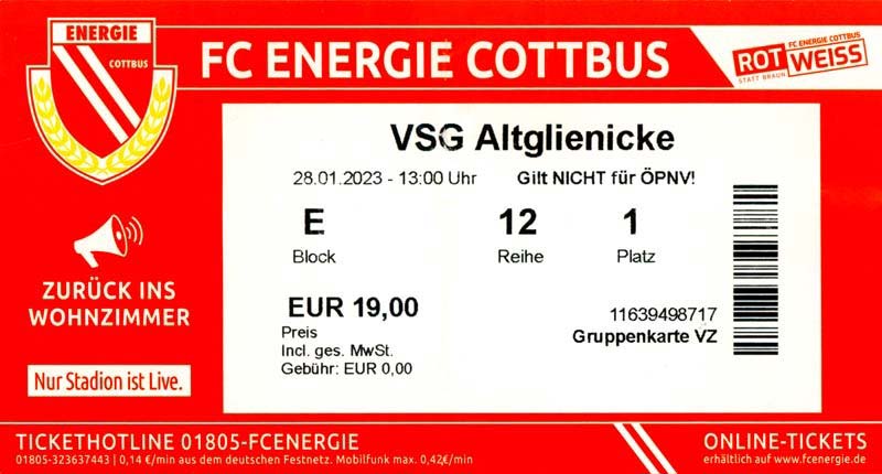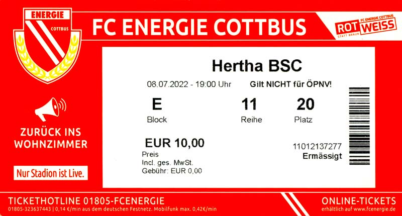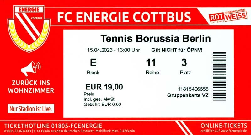Eintrittskarten der 1. Mannschaft 01.07.2022, ESV Lok Falkenberg (A)02.07.2022, Neuzeller SV 1922 (A)08.07.2022, Hertha BSC (H)09.07.2022, KS Lechia Zielona Góra (H)16.07.2022, SpVgg Oberfranken Bayreuth 1921 (A)20.07.2022, FSV Budissa Bautzen (N)24.07.2022, VfV Borussia 06 Hildesheim (H)01.08.2022, SV Werder Bremen (H)05.08.2022, VSG Altglienicke (A)13.08.2022, FSV 63 Luckenwalde (H)21.08.2022, SV Lichtenberg 47 (A)27.08.2022, ZFC Meuselwitz (H)02.09.2022, BSC Preußen 07 Blankenfelde-Mahlow (A)11.09.2022, Berliner AK 07 (A)17.09.2022, Chemnitzer FC (H)24.09.2022, RSV Eintracht 1949 (A)28.09.2022, FC Carl Zeiss Jena (A)08.10.2022, 1. FC Lokomotive Leipzig (H)14.10.2022, Hertha BSC II (A)22.10.2022, FC Viktoria 1889 Berlin (H)30.10.2022, Tennis Borussia Berlin (A)06.11.2022, Greifswalder FC (H)13.11.2022, BFC Dynamo (A)19.11.2022, SV Babelsberg 03 (H)04.12.2022, FC Rot-Weiß Erfurt (A)10.12.2022, SV Babelsberg 03 (A)07.01.2023, SV 1924 SG Eintracht Peitz (A)10.01.2023, FC Erzgebirge Aue (A)14.01.2023, VFC Plauen (N)14.01.2023, 1. FC Frankfurt (Oder) (A)28.01.2023, VSG Altglienicke (H)05.02.2023, FSV 63 Luckenwalde (A)13.02.2023, SV Lichtenberg 47 (H)18.02.2023, ZFC Meuselwitz (A)22.02.2023, BSG Chemie Leipzig (H)25.02.2023, Berliner AK 07 (H)03.03.2023, Chemnitzer FC (A)19.03.2023, 1. FC Lokomotive Leipzig (A)25.03.2023, Werderaner FC Viktoria 1920 (A)01.04.2023, Hertha BSC II (H)05.04.2023, FC Viktoria 1889 Berlin (A)15.04.2023, Tennis Borussia Berlin (H)19.04.2023, FC Carl Zeiss Jena (H)23.04.2023, Greifswalder FC (A)26.04.2023, VfB 1921 Krieschow (H)02.05.2023, BFC Dynamo (H)07.05.2023, VfB Germania Halberstadt (A)13.05.2023, FC Rot-Weiß Erfurt (H)21.05.2023, SV Babelsberg 03 (H)28.05.2023, BSG Chemie Leipzig (A)03.06.2023, FSV 63 Luckenwalde (H)07.06.2023, SpVgg Unterhaching 1925 (H)11.06.2023, SpVgg Unterhaching 1925 (A)