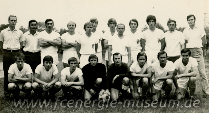 Vordere Reihe von links: Hans Böttcher, Lutz-Michael Häder, Klaus Grebasch, Volker Ziegenhagen, Siegfried Wünsch, ---???--- (Masseur), Willi Kokott (???), Dieter Schulz, polnische Gäste.