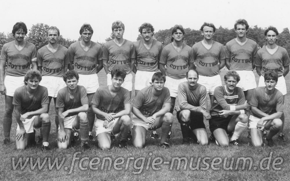 Mittlere Reihe von links: Fritz Bohla (Cheftrainer), Michael Wawrok, Frank Vogel, Holger Hünsche, Rainer Schwerdtner, Rolf-Dieter Kahnt, Detlef Irrgang, Jens Melzig, Manfred Duchrow (Co-Trainer), Lothar Lehmann (Betreuer).