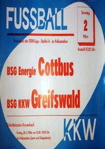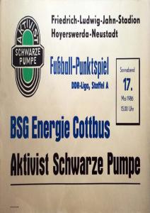 Ankündigungsplakate der 1. Mannschaft 02.03.1986, BSG KKW Greifswald (A)17.05.1986, BSG Aktivist Schwarze Pumpe (A)