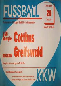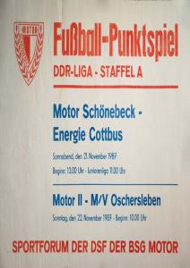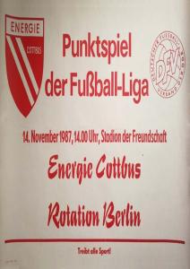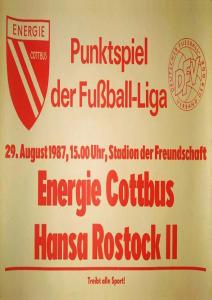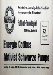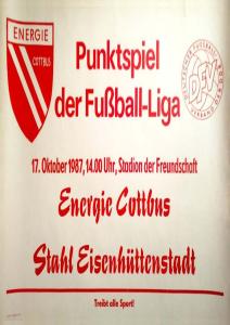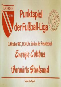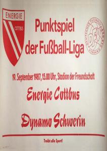 Ankündigungsplakate der 1. Mannschaft 22.08.1987, BSG Aktivist Schwarze Pumpe (A)29.08.1987, F.C. Hansa Rostock II (H)19.09.1987, SG Dynamo Schwerin (H)03.10.1987, ASG Vorwärts Stralsund (H)17.10.1987, BSG Stahl Eisenhüttenstadt (H)14.11.1987, BSG Rotation Berlin (H)21.11.1987, BSG Motor Schönebeck (A)20.02.1988, BSG KKW Greifswald (A)
