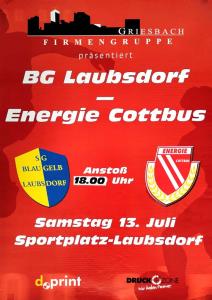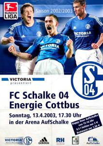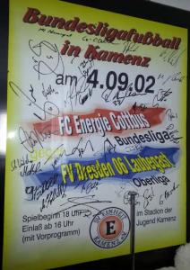 Ankündigungsplakate der 1. Mannschaft 13.07.2002, SG Blau-Gelb Laubsdorf (A)04.09.2002, FV Dresden 06 Laubegast (N)10.11.2002, Borussia VfL 1900 Mönchengladbach (A)13.04.2003, FC Schalke 04 (A)