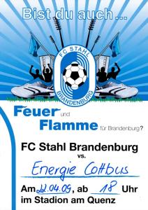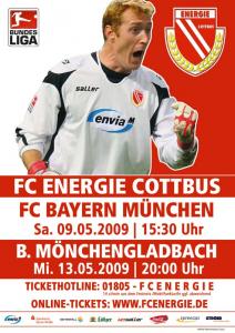 Ankündigungsplakate der 1. Mannschaft 06.07.2008, Kreisauswahl Osterzgebirge (A)17.07.2008, FK Jablonec (H)27.07.2008, MKE Ankaragücü SK 1910 (N)29.07.2008, A.E.K. Athen (N)02.08.2008, FC Ingolstadt 04 (N)16.08.2008, TSG 1899 Hoffenheim (H)30.08.2008, BV Borussia 09 Dortmund (H)13.09.2008, SV Werder Bremen (A)20.09.2008, VfL Bochum 1848 (H)23.09.2008, Borussia VfL 1900 Mönchengladbach (H)27.09.2008, Hertha BSC (A)05.10.2008, Hamburger SV (H)07.10.2008, Kreisauswahl NOL (A)25.10.2008, Eintracht Frankfurt (H)28.10.2008, DSC Arminia Bielefeld (A)01.11.2008, FC Schalke 04 (H)06.12.2008, VfB Stuttgart 1893 (H)28.01.2009, Bayer 04 Leverkusen (A)08.02.2009, Hannover 96 (H)21.02.2009, SV Werder Bremen (H)28.02.2009, VfL Bochum 1848 (A)07.03.2009, Hertha BSC (H)21.03.2009, 1. FC Köln (H)04.04.2009, Eintracht Frankfurt (A)11.04.2009, DSC Arminia Bielefeld (H)17.04.2009, FC Schalke 04 (A)22.04.2009, FC Stahl Brandenburg (A)26.04.2009, VfL Wolfsburg (H)02.05.2009, Karlsruher SC (A)09.05.2009, FC Bayern München (H)13.05.2009, Borussia VfL 1900 Mönchengladbach (H)23.05.2009, Bayer 04 Leverkusen (H)