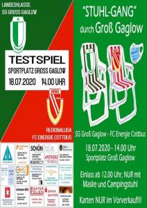 Ankündigungsplakate der 1. Mannschaft 18.07.2020, SG Groß Gaglow (A)22.07.2020, LSV Neustadt/Spree (A)25.07.2020, 1. FC Frankfurt (Oder) (A)29.07.2020, VfB 1921 Krieschow (A)23.08.2020, ZFC Meuselwitz (A)10.10.2020, VfB 1921 Krieschow (A)