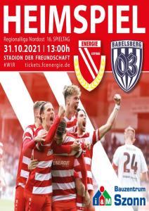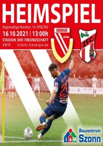 Ankündigungsplakate der 1. Mannschaft 19.06.2021, SG Groß Gaglow (A)23.06.2021, SV Wacker 09 Cottbus-Ströbitz (A)01.10.2021, VfB Germania Halberstadt (A)16.10.2021, ZFC Meuselwitz (H)31.10.2021, SV Babelsberg 03 (H)13.11.2021, Fortuna Babelsberg (H)20.11.2021, Hertha BSC II (H)10.12.2021, BFC Dynamo (H)10.04.2022, ZFC Meuselwitz (A)21.05.2022, VfB 1921 Krieschow (N)