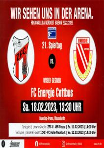 Ankündigungsplakate der 1. Mannschaft 01.07.2022, ESV Lok Falkenberg (A)02.07.2022, Neuzeller SV 1922 (A)03.07.2022, SpG SG Frischauf Briesen 1912 / SV Grün-Weiß Dissen (A)09.07.2022, KS Lechia Zielona Góra (H)24.07.2022, VfV Borussia 06 Hildesheim (H)21.08.2022, SV Lichtenberg 47 (A)24.09.2022, RSV Eintracht 1949 (A)10.12.2022, SV Babelsberg 03 (A)07.01.2023, SV 1924 SG Eintracht Peitz (A)14.01.2023, VFC Plauen (N)14.01.2023, 1. FC Frankfurt (Oder) (A)18.02.2023, ZFC Meuselwitz (A)19.03.2023, 1. FC Lokomotive Leipzig (A)25.03.2023, Werderaner FC Viktoria 1920 (A)23.04.2023, Greifswalder FC (A)07.05.2023, VfB Germania Halberstadt (A)28.05.2023, BSG Chemie Leipzig (A)03.06.2023, FSV 63 Luckenwalde (H)