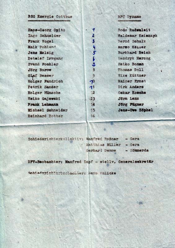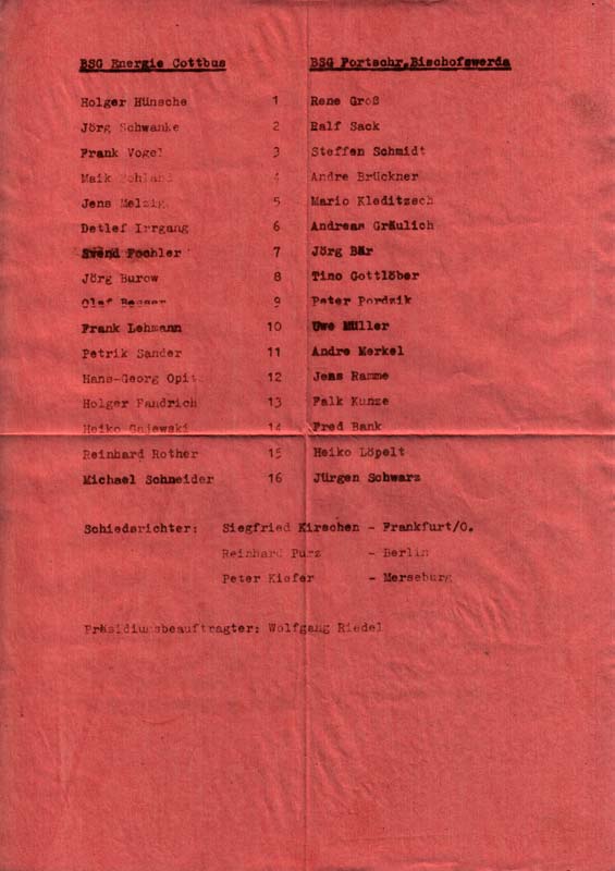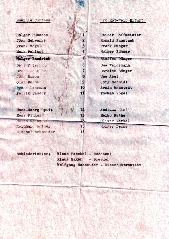 Presseinfos der 1. Mannschaft 09.09.1989, BFC Dynamo (H)07.04.1990, BSG Fortschritt Bischofswerda (H)28.04.1990, FC Rot-Weiß Erfurt (H)