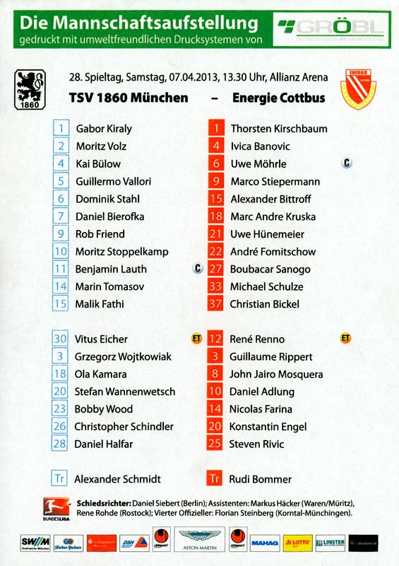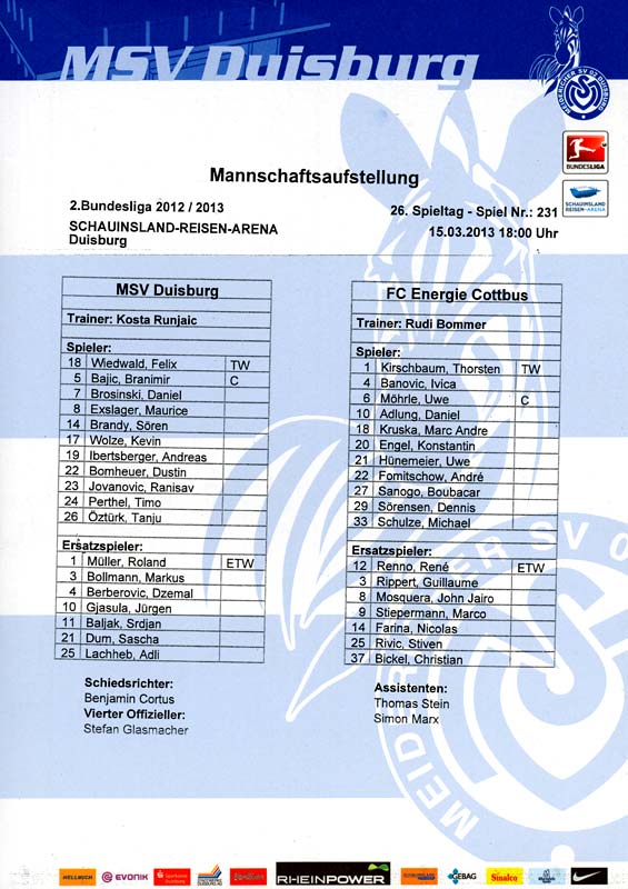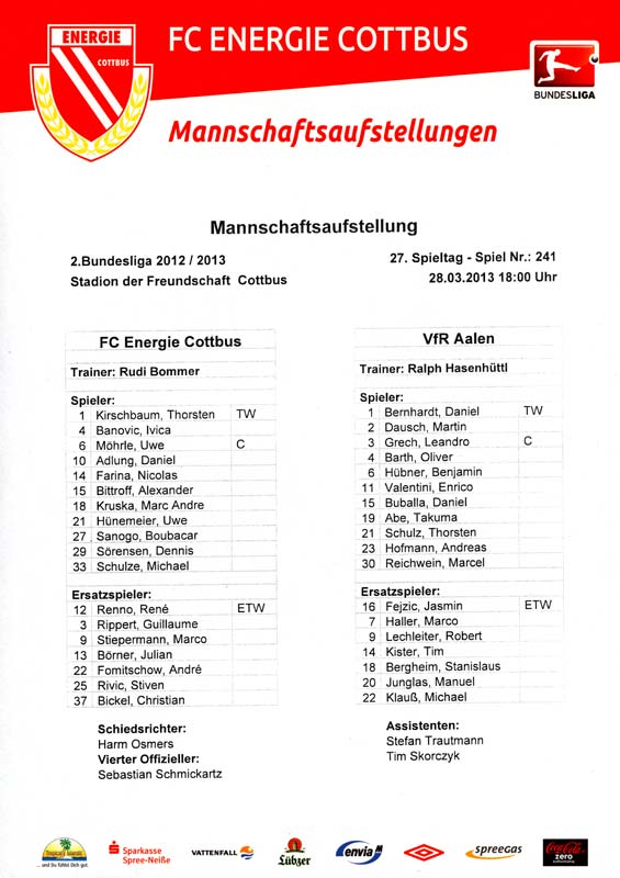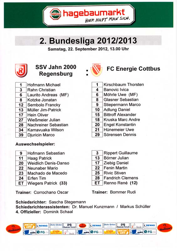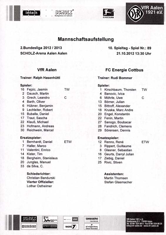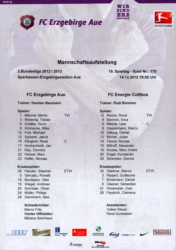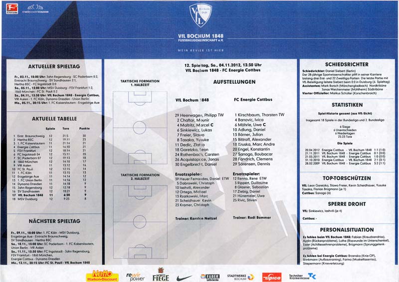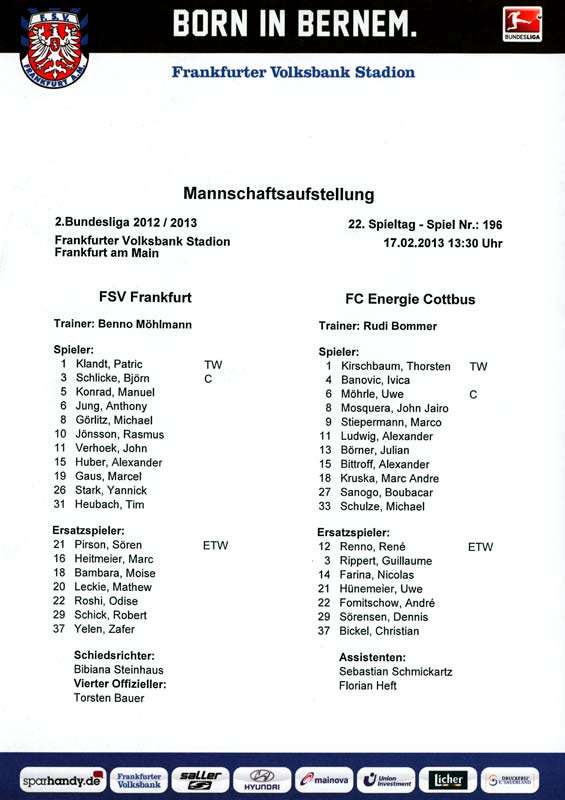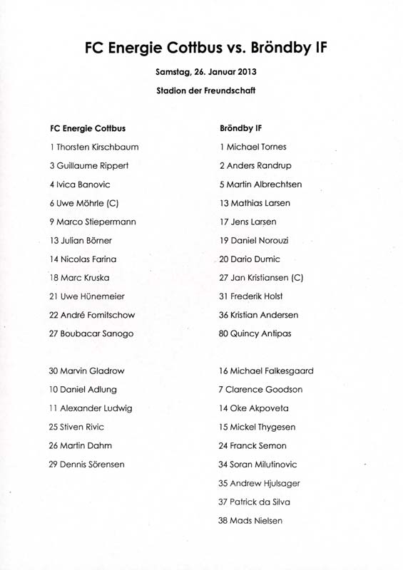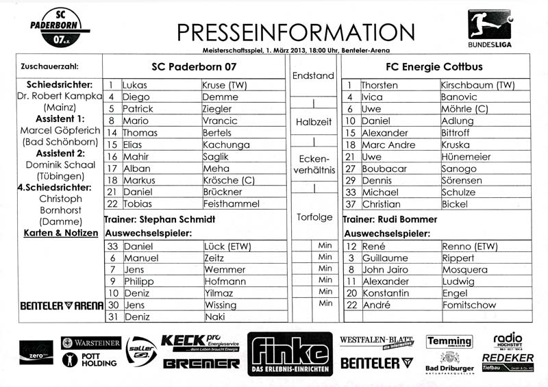 Presseinfos der 1. Mannschaft 29.07.2012, West Ham United F.C. (H)03.08.2012, FC Ingolstadt 04 (A)10.08.2012, FC Erzgebirge Aue (H)25.08.2012, FC St. Pauli 1910 (H)31.08.2012, 1. FC Köln (A)14.09.2012, FSV Frankfurt 1899 (H)22.09.2012, SSV Jahn Regensburg (A)25.09.2012, SC Paderborn 07 (H)29.09.2012, 1. FC Union Berlin (A)06.10.2012, MSV Duisburg (H)21.10.2012, VfR Aalen 1921 (A)26.10.2012, TSV 1860 München (H)04.11.2012, VfL Bochum 1848 (A)11.11.2012, SG Dynamo Dresden (H)16.11.2012, 1. FC Kaiserslautern (A)24.11.2012, TSV Eintracht Braunschweig (H)28.11.2012, SV Sandhausen 1916 (A)03.12.2012, Hertha BSC (H)09.12.2012, FC Ingolstadt 04 (H)14.12.2012, FC Erzgebirge Aue (A)09.01.2013, Berliner AK 07 (H)26.01.2013, Brøndby IF (H)03.02.2013, FC St. Pauli 1910 (A)09.02.2013, 1. FC Köln (H)17.02.2013, FSV Frankfurt 1899 (A)24.02.2013, SSV Jahn Regensburg (H)01.03.2013, SC Paderborn 07 (A)09.03.2013, 1. FC Union Berlin (H)15.03.2013, MSV Duisburg (A)28.03.2013, VfR Aalen 1921 (H)07.04.2013, TSV 1860 München (A)14.04.2013, VfL Bochum 1848 (H)21.04.2013, SG Dynamo Dresden (A)29.04.2013, 1. FC Kaiserslautern (H)06.05.2013, TSV Eintracht Braunschweig (A)12.05.2013, SV Sandhausen 1916 (H)