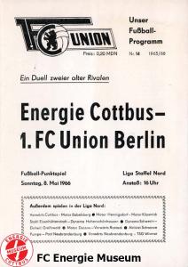 Programme der 1. Mannschaft 22.08.1965, BSG Einheit Greifswald (A)05.12.1965, SC Neubrandenburg (A)03.04.1966, ASG Vorwärts Cottbus (H)17.04.1966, BSG Motor Hennigsdorf (H)01.05.1966, BSG Motor Dessau (H)08.05.1966, 1. FC Union Berlin (A)15.05.1966, BSG Post Neubrandenburg (H)