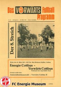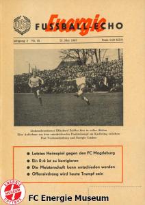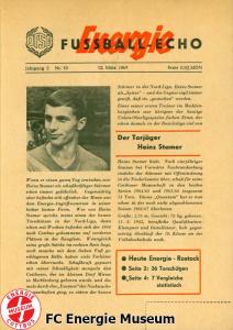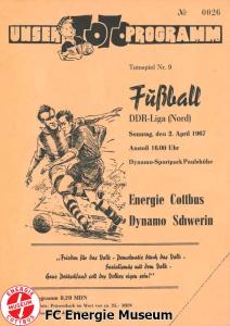 Programme der 1. Mannschaft 28.08.1966, BSG Motor Hennigsdorf (H)10.09.1966, BSG Stahl Eisenhüttenstadt (H)25.09.1966, ASG Vorwärts Cottbus (H)02.10.1966, BSG Post Neubrandenburg (A)09.10.1966, SG Dynamo Schwerin (H)30.10.1966, BSG Motor Babelsberg (H)13.11.1966, BSG Motor Dessau (H)20.11.1966, 1. FC Magdeburg (A)27.11.1966, ASG Vorwärts Neubrandenburg (H)12.02.1967, BSG Motor Stralsund (H)26.02.1967, SG Lichtenberg 47 (H)05.03.1967, BSG Stahl Eisenhüttenstadt (A)12.03.1967, ASG Vorwärts Rostock-Gehlsdorf (H)19.03.1967, ASG Vorwärts Cottbus (A)24.03.1967, BSG Post Neubrandenburg (H)02.04.1967, SG Dynamo Schwerin (A)09.04.1967, BSG Motor Köpenick (H)23.04.1967, BSG Lokomotive Halberstadt (H)07.05.1967, TSG Wismar (H)21.05.1967, 1. FC Magdeburg (H)