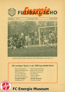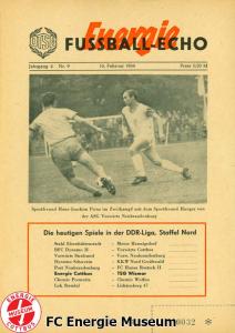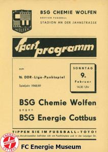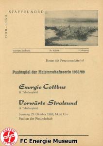 Programme der 1. Mannschaft 18.08.1968, BSG Chemie Wolfen (H)01.09.1968, F.C. Hansa Rostock II (H)15.09.1968, ASG Vorwärts Neubrandenburg (H)22.09.1968, ASG Vorwärts Cottbus (A)29.09.1968, BSG Motor Hennigsdorf (H)13.10.1968, BSG Stahl Eisenhüttenstadt (A)19.10.1968, BFC Dynamo II (H)27.10.1968, ASG Vorwärts Stralsund (A)03.11.1968, SG Dynamo Schwerin (H)24.11.1968, SG Lichtenberg 47 (H)01.12.1968, BSG Chemie Premnitz (H)09.02.1969, BSG Chemie Wolfen (A)16.02.1969, TSG Wismar (H)02.03.1969, BSG KKW Nord Greifswald (H)30.03.1969, BSG Stahl Eisenhüttenstadt (H)12.04.1969, ASG Vorwärts Stralsund (H)20.04.1969, SG Dynamo Schwerin (A)27.04.1969, BSG Post Neubrandenburg (H)11.05.1969, BSG Lokomotive Stendal (H)18.05.1969, ASG Vorwärts Cottbus (H)