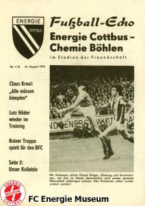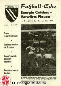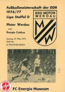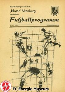 Programme der 1. Mannschaft 14.08.1976, ASG Vorwärts Plauen (A)21.08.1976, BSG Chemie Böhlen (H)28.08.1976, BSG Aktivist Schwarze Pumpe (A)19.09.1976, FSV Lokomotive Dresden (H)10.10.1976, BSG Motor Werdau (H)24.10.1976, BSG Aktivist Brieske-Senftenberg (A)31.10.1976, BSG Motor Altenburg (H)07.11.1976, BSG Fortschritt Bischofswerda (A)13.11.1976, BSG Fortschritt Krumhermersdorf (H)21.11.1976, ASG Vorwärts Plauen (H)05.12.1976, BSG Aktivist Schwarze Pumpe (H)20.03.1977, TSG Gröditz (H)27.03.1977, BSG Motor Werdau (A)03.04.1977, BSG Aktivist Brieske-Senftenberg (H)10.04.1977, BSG Motor Altenburg (A)17.04.1977, BSG Fortschritt Bischofswerda (H)