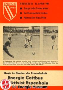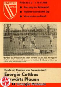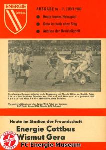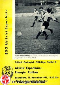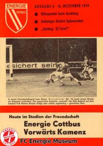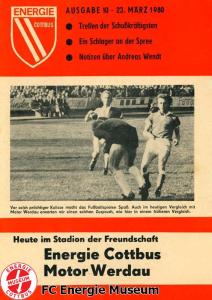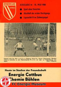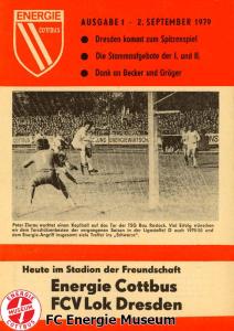 Programme der 1. Mannschaft 02.09.1979, FSV Lokomotive Dresden (H)08.09.1979, ASG Vorwärts Kamenz (A)16.09.1979, BSG Stahl Brandenburg (H)22.09.1979, BSG Motor Fritz Heckert Karl-Marx-Stadt (H)30.09.1979, ASG Vorwärts Plauen (A)07.10.1979, BSG Aktivist Brieske-Senftenberg (H)20.10.1979, F.C. Hansa Rostock (A)28.10.1979, BSG Aktivist Schwarze Pumpe (A)04.11.1979, BSG Fortschritt Bischofswerda (H)17.11.1979, BSG Aktivist Espenhain (A)25.11.1979, SG Dynamo Lübben (H)02.12.1979, SG Sosa (H)16.12.1979, ASG Vorwärts Kamenz (H)02.03.1980, BSG Motor Fritz Heckert Karl-Marx-Stadt (A)16.03.1980, BSG Aktivist Brieske-Senftenberg (A)23.03.1980, BSG Motor Werdau (H)30.03.1980, BSG Aktivist Schwarze Pumpe (H)04.04.1980, ASG Vorwärts Plauen (H)06.04.1980, BSG Fortschritt Bischofswerda (A)13.04.1980, BSG Aktivist Espenhain (H)27.04.1980, SG Dynamo Fürstenwalde (A)01.05.1980, F.C. Hansa Rostock (H)04.05.1980, BSG Wismut Gera (A)18.05.1980, BSG Chemie Böhlen (H)24.05.1980, SG Dynamo Fürstenwalde (H)31.05.1980, F.C. Hansa Rostock (A)07.06.1980, BSG Wismut Gera (H)21.06.1980, BSG Chemie Böhlen (A)