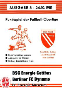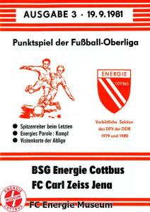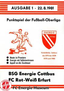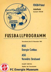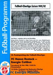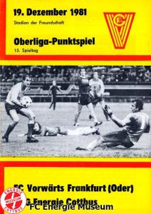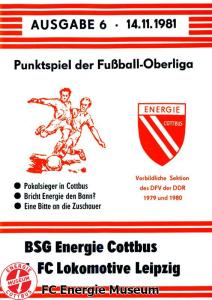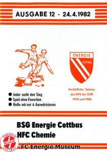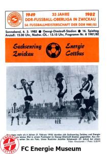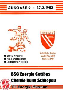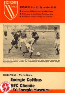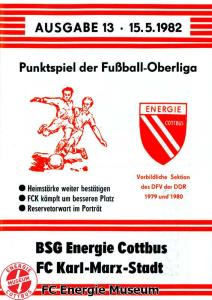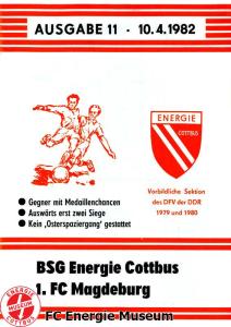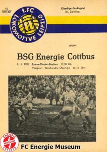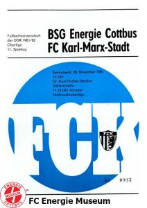 Programme der 1. Mannschaft 22.08.1981, FC Rot-Weiß Erfurt (H)29.08.1981, BSG Chemie Buna Schkopau (A)05.09.1981, BSG Sachsenring Zwickau (H)12.09.1981, BSG Wismut Aue (A)19.09.1981, FC Carl Zeiss Jena (H)26.09.1981, SG Dynamo Dresden (H)14.10.1981, 1. FC Magdeburg (A)24.10.1981, BFC Dynamo (H)31.10.1981, Hallescher FC Chemie (A)14.11.1981, 1. FC Lokomotive Leipzig (H)21.11.1981, ASG Vorwärts Stralsund (A)28.11.1981, FC Karl-Marx-Stadt (A)06.12.1981, F.C. Hansa Rostock (H)12.12.1981, Hallescher FC Chemie (H)19.12.1981, FC Vorwärts Frankfurt (Oder) (A)20.02.1982, FC Rot-Weiß Erfurt (A)27.02.1982, BSG Chemie Buna Schkopau (H)06.03.1982, BSG Sachsenring Zwickau (A)13.03.1982, BSG Wismut Aue (H)20.03.1982, FC Carl Zeiss Jena (A)27.03.1982, SG Dynamo Dresden (A)03.04.1982, SG Dynamo Dresden (A)10.04.1982, 1. FC Magdeburg (H)17.04.1982, BFC Dynamo (A)24.04.1982, Hallescher FC Chemie (H)08.05.1982, 1. FC Lokomotive Leipzig (A)15.05.1982, FC Karl-Marx-Stadt (H)22.05.1982, F.C. Hansa Rostock (A)30.05.1982, FC Vorwärts Frankfurt (Oder) (H)