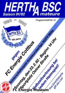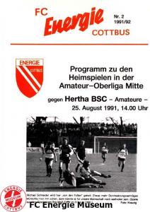 Programme der 1. Mannschaft 03.07.1991, Silkeborg IF 1917 (H)06.07.1991, Hammarby IF (H)13.07.1991, Silkeborg IF 1917 (A)17.07.1991, Hammarby IF (A)20.07.1991, ASVŠ Dukla Banská Bystrica (H)04.08.1991, SV Lichtenberg 47 (A)10.08.1991, FSV Lok Altmark Stendal (H)17.08.1991, Türkspor Berlin 1965 (A)25.08.1991, Hertha BSC (A.) (H)28.08.1991, FC Anhalt Dessau (A)01.09.1991, BFC Türkiyemspor 1978 (A)08.09.1991, SC Charlottenburg (H)15.09.1991, 1. FC Union Berlin (A)22.09.1991, SV Stahl Thale (H)28.09.1991, 1. FC Magdeburg (A)06.10.1991, SpVgg Blau-Weiß 1890 Berlin (A.) (H)13.10.1991, FSV Glückauf Brieske-Senftenberg (A)27.10.1991, Neuköllner SC Marathon 02 (A)03.11.1991, FV Wannsee (H)10.11.1991, F.C. Hertha 03 Zehlendorf (A)16.11.1991, VfB Lichterfelde 1892 (H)20.11.1991, SC Gatow 1931 (H)24.11.1991, FSV Velten 90 (A)07.12.1991, SV Lichtenberg 47 (H)14.12.1991, FSV Lok Altmark Stendal (A)02.02.1992, BSV Spindlersfeld (H)16.02.1992, Türkspor Berlin 1965 (H)23.02.1992, Hertha BSC (A.) (A)01.03.1992, FC Anhalt Dessau (H)08.03.1992, BFC Türkiyemspor 1978 (H)21.03.1992, 1. FC Union Berlin (H)05.04.1992, 1. FC Magdeburg (H)12.04.1992, FSV Glückauf Brieske-Senftenberg (H)20.04.1992, Neuköllner SC Marathon 02 (H)29.04.1992, ESV Lokomotive Cottbus (A)03.05.1992, VfB Lichterfelde 1892 (A)06.05.1992, F.C. Hertha 03 Zehlendorf (H)13.05.1992, SV Thale 04 (A)15.05.1992, Spremberger SV Turbine 90 (A)02.06.1992, Eisenhüttenstädter FC Stahl (H)