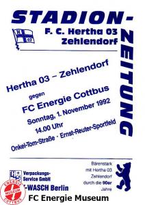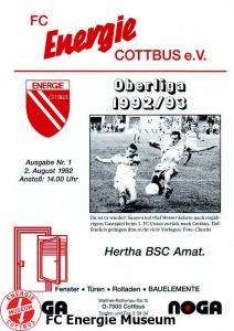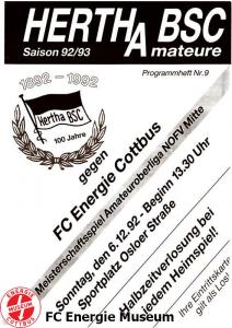 Programme der 1. Mannschaft 02.08.1992, Hertha BSC (A.) (H)09.08.1992, SC Charlottenburg (A)16.08.1992, SV Thale 04 (H)19.08.1992, FSV Glückauf Brieske-Senftenberg (A)23.08.1992, Neuköllner SC Marathon 02 (H)06.09.1992, Türkspor Berlin 1965 (A)13.09.1992, 1. FC Magdeburg (H)20.09.1992, FC Anhalt Dessau (A)04.10.1992, 1. FC Lübars 1962 (A)11.10.1992, VfB Lichterfelde 1892 (H)18.10.1992, FC Einheit 1990 Wernigerode (H)01.11.1992, F.C. Hertha 03 Zehlendorf (A)08.11.1992, BFC Türkiyemspor 1978 (H)14.11.1992, FSV Lok Altmark Stendal (A)21.11.1992, 1. FC Union Berlin (H)29.11.1992, Hallescher FC (A)06.12.1992, Hertha BSC (A.) (A)09.12.1992, Frankfurter FC Viktoria 91 (A)31.01.1993, SC Charlottenburg (H)14.02.1993, FSV Glückauf Brieske-Senftenberg (H)21.02.1993, Neuköllner SC Marathon 02 (A)07.03.1993, 1. FC Magdeburg (A)14.03.1993, FC Anhalt Dessau (H)28.03.1993, 1. FC Lübars 1962 (H)31.03.1993, SV Thale 04 (A)04.04.1993, VfB Lichterfelde 1892 (A)12.04.1993, FC Einheit 1990 Wernigerode (A)18.04.1993, F.C. Hertha 03 Zehlendorf (H)21.04.1993, Türkspor Berlin 1965 (H)02.05.1993, FSV Lok Altmark Stendal (H)16.05.1993, Hallescher FC (H)