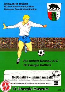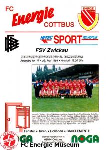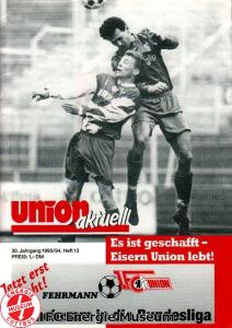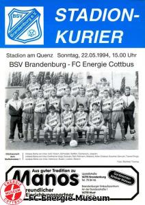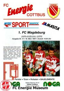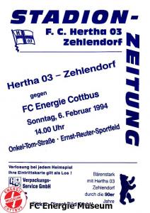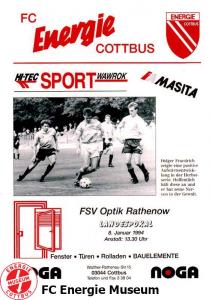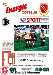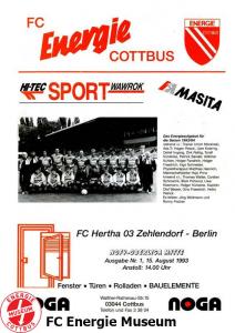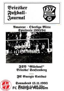 Programme der 1. Mannschaft 08.08.1993, FSV Lok Altmark Stendal (A)15.08.1993, F.C. Hertha 03 Zehlendorf (H)05.09.1993, Frohnauer SC 1946 (H)12.09.1993, FC Einheit 1990 Wernigerode (H)19.09.1993, Hallescher FC (A)26.09.1993, 1. FC Union Berlin (H)09.10.1993, 1. FC Magdeburg (A)17.10.1993, Hertha BSC (A.) (H)31.10.1993, VfB Lichterfelde 1892 (A)07.11.1993, BFC Türkiyemspor 1978 (H)13.11.1993, FSV Glückauf Brieske-Senftenberg (A)17.11.1993, SV Merseburg 99 (H)20.11.1993, FC Anhalt Dessau (H)05.12.1993, SC Charlottenburg (H)12.12.1993, FSV Lok Altmark Stendal (H)08.01.1994, FSV Optik Rathenow (H)06.02.1994, F.C. Hertha 03 Zehlendorf (A)13.02.1994, Türkspor Berlin 1965 (H)20.02.1994, Frohnauer SC 1946 (A)27.02.1994, FC Einheit 1990 Wernigerode (A)05.03.1994, Hallescher FC (H)13.03.1994, 1. FC Union Berlin (A)19.03.1994, 1. FC Magdeburg (H)02.04.1994, SV Motor Hennigsdorf (A)10.04.1994, VfB Lichterfelde 1892 (H)17.04.1994, BFC Türkiyemspor 1978 (A)24.04.1994, FSV Glückauf Brieske-Senftenberg (H)01.05.1994, FC Anhalt Dessau (A)04.05.1994, BSV Brandenburg (A)08.05.1994, SV Merseburg 99 (A)15.05.1994, SC Charlottenburg (A)22.05.1994, BSV Brandenburg (A)25.05.1994, FSV Zwickau (H)02.06.1994, BSV Brandenburg (H)05.06.1994, FSV Zwickau (A)