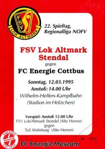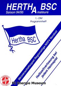 Programme der 1. Mannschaft 31.07.1994, F.C. Hertha 03 Zehlendorf (H)07.08.1994, Spandauer SV 1894 (A)14.08.1994, Hertha BSC (A.) (H)20.08.1994, BSV Brandenburg (A)28.08.1994, FSV Lok Altmark Stendal (H)03.09.1994, FC Berlin (A)11.09.1994, BFC Türkiyemspor 1978 (A)25.09.1994, FC Carl Zeiss Jena (H)09.10.1994, 1. FC Union Berlin (A)16.10.1994, FC Erzgebirge Aue (H)23.10.1994, FSV Optik Rathenow (A)30.10.1994, Bischofswerdaer FV 08 (H)05.11.1994, Eisenhüttenstädter FC Stahl (A)13.11.1994, Tennis Borussia Berlin (H)19.11.1994, BTSV Reinickendorfer Füchse (A)04.12.1994, FC Sachsen Leipzig (H)10.12.1994, FC Rot-Weiß Erfurt (A)17.12.1994, BSV Brandenburg (A)05.02.1995, F.C. Hertha 03 Zehlendorf (A)12.02.1995, Spandauer SV 1894 (H)19.02.1995, Hertha BSC (A.) (A)05.03.1995, BSV Brandenburg (H)12.03.1995, FSV Lok Altmark Stendal (A)18.03.1995, FC Berlin (H)25.03.1995, BFC Türkiyemspor 1978 (H)31.03.1995, FC Carl Zeiss Jena (A)08.04.1995, 1. FC Union Berlin (H)12.04.1995, FC Erzgebirge Aue (A)15.04.1995, SV Falkensee-Finkenkrug (A)22.04.1995, FSV Optik Rathenow (H)29.04.1995, Bischofswerdaer FV 08 (A)06.05.1995, Eisenhüttenstädter FC Stahl (H)10.05.1995, SG Bornim (H)13.05.1995, Tennis Borussia Berlin (A)20.05.1995, BTSV Reinickendorfer Füchse (H)28.05.1995, FC Sachsen Leipzig (A)02.06.1995, FC Rot-Weiß Erfurt (H)04.06.1995, FC Schalke 04 (H)