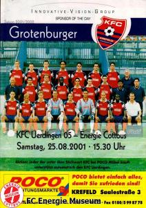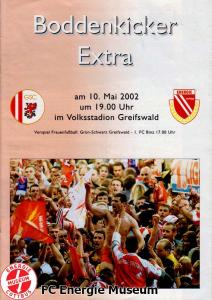 Programme der 1. Mannschaft 14.07.2001, SV Babelsberg 03 (N)28.07.2001, Hamburger SV (H)04.08.2001, SV Werder Bremen (A)11.08.2001, 1. FC Nürnberg (H)15.08.2001, SC 1911 Großröhrsdorf (A)19.08.2001, Hertha BSC (A)25.08.2001, KFC Uerdingen 05 (A)08.09.2001, VfL Wolfsburg (H)16.09.2001, F.C. Hansa Rostock (A)22.09.2001, FC Bayern München (H)29.09.2001, FC Schalke 04 (A)13.10.2001, Bayer 04 Leverkusen (H)20.10.2001, FC St. Pauli 1910 (A)27.10.2001, BV Borussia 09 Dortmund (H)04.11.2001, SC Freiburg (A)18.11.2001, Borussia VfL 1900 Mönchengladbach (A)24.11.2001, VfB Stuttgart 1893 (H)01.12.2001, TSV 1860 München (A)08.12.2001, 1. FC Kaiserslautern (H)15.12.2001, 1. FC Köln (A)18.12.2001, Hamburger SV (A)27.01.2002, SV Werder Bremen (H)02.02.2002, 1. FC Nürnberg (A)05.02.2002, Hertha BSC (H)09.02.2002, VfL Wolfsburg (A)17.02.2002, F.C. Hansa Rostock (H)23.02.2002, FC Bayern München (A)02.03.2002, FC Schalke 04 (H)09.03.2002, Bayer 04 Leverkusen (A)16.03.2002, FC St. Pauli 1910 (H)24.03.2002, BV Borussia 09 Dortmund (A)30.03.2002, SC Freiburg (H)06.04.2002, Borussia VfL 1900 Mönchengladbach (H)14.04.2002, VfB Stuttgart 1893 (A)20.04.2002, TSV 1860 München (H)27.04.2002, 1. FC Kaiserslautern (A)04.05.2002, 1. FC Köln (H)10.05.2002, Greifswalder SC (A)15.05.2002, FC Einheit Rudolstadt (A)16.05.2002, FSV Schleiz (A)