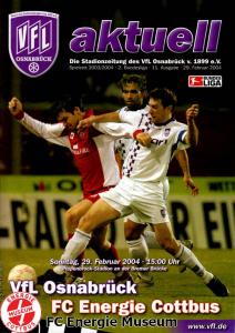 Programme der 1. Mannschaft 12.07.2003, ZSKA Sofia (H)03.08.2003, SV Eintracht Trier 05 (H)10.08.2003, 1. FC Union Berlin (A)17.08.2003, TSV Alemannia Aachen (H)25.08.2003, 1. FC Nürnberg (A)29.08.2003, VfL Wolfsburg (A.) (A)14.09.2003, VfL Osnabrück 1899 (H)21.09.2003, SC Rot-Weiß Oberhausen 1904 (A)26.09.2003, LR Ahlen (H)03.10.2003, Karlsruher SC (A)19.10.2003, SV Wacker Burghausen (H)27.10.2003, 1. FSV Mainz 05 (A)31.10.2003, DSC Arminia Bielefeld (A)10.11.2003, FC Erzgebirge Aue (H)23.11.2003, SpVgg Greuther Fürth 1903 (A)28.11.2003, MSV Duisburg (H)07.12.2003, VfB Lübeck 1919 (A)14.12.2003, SpVgg Unterhaching (H)18.12.2003, SSV Jahn Regensburg (A)01.02.2004, SV Eintracht Trier 05 (A)09.02.2004, 1. FC Union Berlin (H)15.02.2004, TSV Alemannia Aachen (A)20.02.2004, 1. FC Nürnberg (H)29.02.2004, VfL Osnabrück 1899 (A)07.03.2004, SC Rot-Weiß Oberhausen 1904 (H)12.03.2004, LR Ahlen (A)19.03.2004, Karlsruher SC (H)26.03.2004, SV Wacker Burghausen (A)05.04.2004, 1. FSV Mainz 05 (H)08.04.2004, DSC Arminia Bielefeld (H)16.04.2004, FC Erzgebirge Aue (A)25.04.2004, SpVgg Greuther Fürth 1903 (H)02.05.2004, MSV Duisburg (A)09.05.2004, VfB Lübeck 1919 (H)16.05.2004, SpVgg Unterhaching (A)23.05.2004, SSV Jahn Regensburg (H)26.05.2004, SV Waren 09 (A)