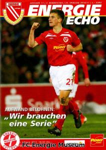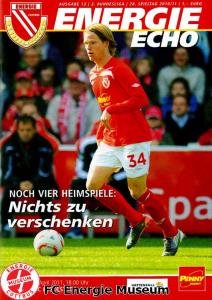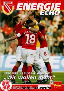 Programme der 1. Mannschaft 13.07.2010, SV Wacker 09 Cottbus-Ströbitz (A)15.07.2010, FSV Glückauf Brieske-Senftenberg (A)17.07.2010, FC Carl Zeiss Jena (A)30.07.2010, Chemnitzer FC (A)15.08.2010, TuS Heeslingen (A)22.08.2010, TSV Fortuna Düsseldorf (H)29.08.2010, DSC Arminia Bielefeld (A)13.09.2010, Karlsruher SC (H)17.09.2010, TSV Alemannia Aachen (A)21.09.2010, SpVgg Greuther Fürth 1903 (H)24.09.2010, Hertha BSC (H)03.10.2010, FSV Frankfurt 1899 (A)17.10.2010, SC Paderborn 07 (H)22.10.2010, VfL Osnabrück 1899 (A)26.10.2010, SC Freiburg (H)31.10.2010, VfL Bochum 1848 (H)05.11.2010, FC Ingolstadt 04 (A)14.11.2010, TSV 1860 München (H)22.11.2010, MSV Duisburg (A)28.11.2010, FC Erzgebirge Aue (H)04.12.2010, FC Augsburg 1907 (A)13.12.2010, 1. FC Union Berlin (H)19.12.2010, SC Rot-Weiß Oberhausen 1904 (A)22.12.2010, VfL Wolfsburg (A)15.01.2011, TSV Fortuna Düsseldorf (A)22.01.2011, DSC Arminia Bielefeld (H)26.01.2011, TSG 1899 Hoffenheim (H)30.01.2011, Karlsruher SC (A)04.02.2011, TSV Alemannia Aachen (H)12.02.2011, SpVgg Greuther Fürth 1903 (A)21.02.2011, Hertha BSC (A)25.02.2011, FSV Frankfurt 1899 (H)01.03.2011, MSV Duisburg (A)05.03.2011, SC Paderborn 07 (A)13.03.2011, VfL Osnabrück 1899 (H)21.03.2011, VfL Bochum 1848 (A)01.04.2011, FC Ingolstadt 04 (H)09.04.2011, TSV 1860 München (A)16.04.2011, MSV Duisburg (H)21.04.2011, FC Erzgebirge Aue (A)02.05.2011, FC Augsburg 1907 (H)08.05.2011, 1. FC Union Berlin (A)15.05.2011, SC Rot-Weiß Oberhausen 1904 (H)