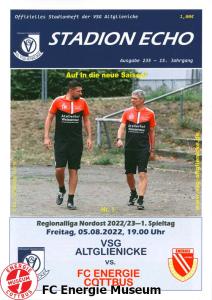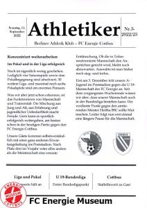 Programme der 1. Mannschaft 20.07.2022, FSV Budissa Bautzen (N)01.08.2022, SV Werder Bremen (H)05.08.2022, VSG Altglienicke (A)13.08.2022, FSV 63 Luckenwalde (H)21.08.2022, SV Lichtenberg 47 (A)27.08.2022, ZFC Meuselwitz (H)02.09.2022, BSC Preußen 07 Blankenfelde-Mahlow (A)11.09.2022, Berliner AK 07 (A)17.09.2022, Chemnitzer FC (H)24.09.2022, RSV Eintracht 1949 (A)28.09.2022, FC Carl Zeiss Jena (A)08.10.2022, 1. FC Lokomotive Leipzig (H)22.10.2022, FC Viktoria 1889 Berlin (H)30.10.2022, Tennis Borussia Berlin (A)06.11.2022, Greifswalder FC (H)13.11.2022, BFC Dynamo (A)04.12.2022, FC Rot-Weiß Erfurt (A)10.12.2022, SV Babelsberg 03 (A)28.01.2023, VSG Altglienicke (H)05.02.2023, FSV 63 Luckenwalde (A)13.02.2023, SV Lichtenberg 47 (H)18.02.2023, ZFC Meuselwitz (A)22.02.2023, BSG Chemie Leipzig (H)25.02.2023, Berliner AK 07 (H)03.03.2023, Chemnitzer FC (A)19.03.2023, 1. FC Lokomotive Leipzig (A)25.03.2023, Werderaner FC Viktoria 1920 (A)01.04.2023, Hertha BSC II (H)15.04.2023, Tennis Borussia Berlin (H)19.04.2023, FC Carl Zeiss Jena (H)23.04.2023, Greifswalder FC (A)02.05.2023, BFC Dynamo (H)07.05.2023, VfB Germania Halberstadt (A)13.05.2023, FC Rot-Weiß Erfurt (H)21.05.2023, SV Babelsberg 03 (H)28.05.2023, BSG Chemie Leipzig (A)03.06.2023, FSV 63 Luckenwalde (H)07.06.2023, SpVgg Unterhaching 1925 (H)