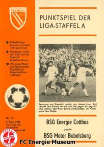 | 20. | 06.03.1988 | spielfrei () | | BSG Energie Cottbus Junioren |