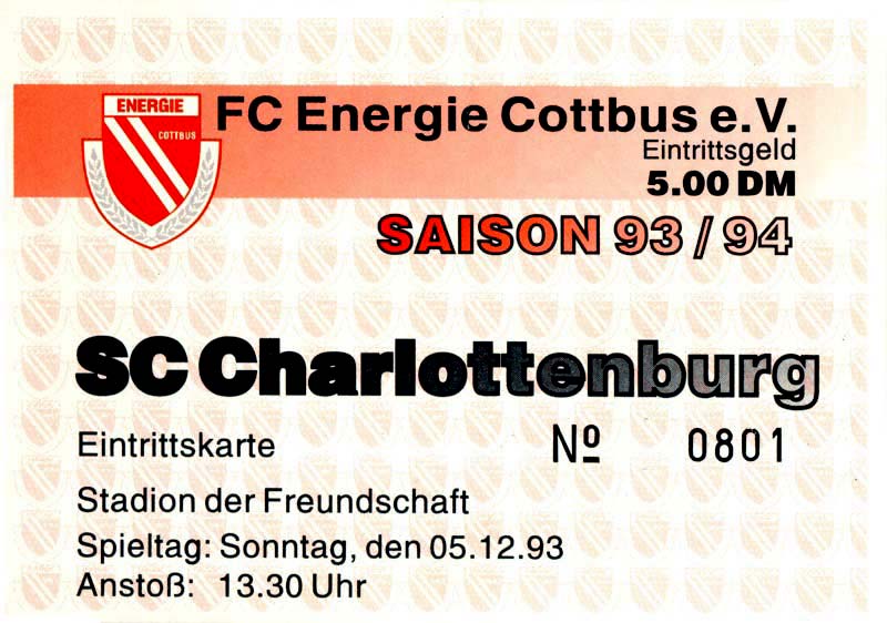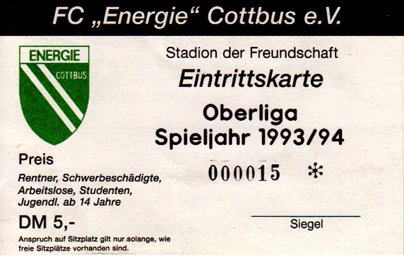 | 15. | 12.12.1993 | SpVgg Finsterwalde A-Junioren () | 0:8 | FC Energie Cottbus A-Junioren |