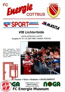 | 24. | 30.04.1994 | SV Babelsberg 03 B-Junioren () | 1:1 | FC Energie Cottbus B-Junioren |