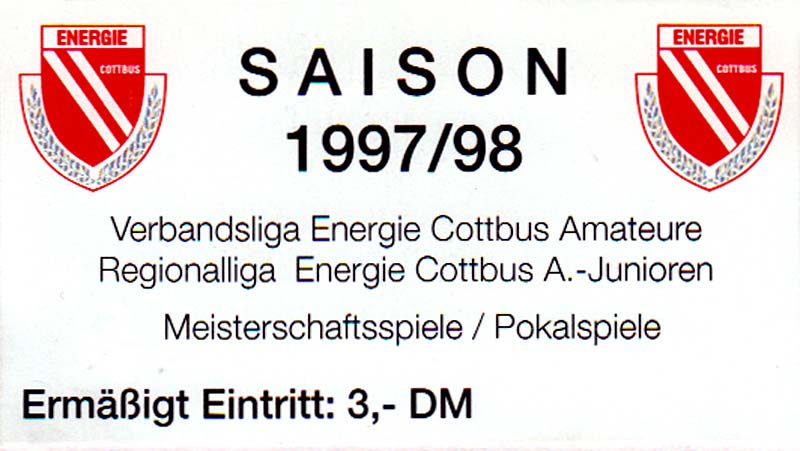 | 9. | 08.11.1997 | SV VGS 90 Schwedt B-Junioren () | 1:4 | FC Energie Cottbus B-Junioren |