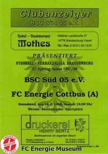 | 12. | 09.05.1998 | FSV Glückauf Brieske-Senftenberg B-Junioren () | 1:6 | FC Energie Cottbus B-Junioren |