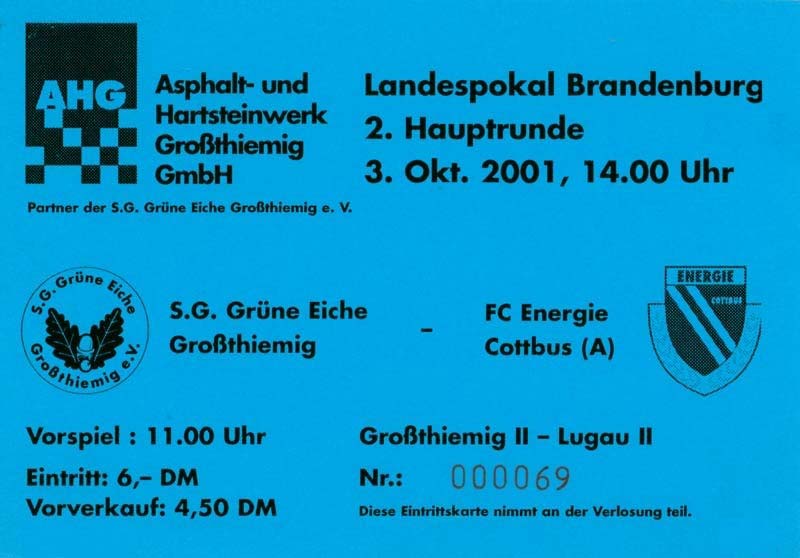 | 8. | 28.10.2001 | VfL Halle 1896 B-Junioren () | 1:4 | FC Energie Cottbus B-Junioren |