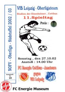 | 9. | 09.11.2002 | Frankfurter FC Viktoria 91 B-Junioren () | 0:0 | FC Energie Cottbus C-Junioren |