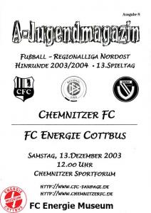 | 10. | 20.12.2003 | 1. FC Magdeburg B-Junioren () | 0:0 | FC Energie Cottbus B-Junioren |