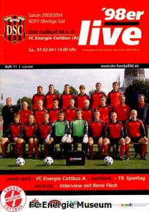 | 19. | 09.05.2004 | TSV Cottbus A-Junioren () | 0:6 | FC Energie Cottbus 2. B-Junioren |