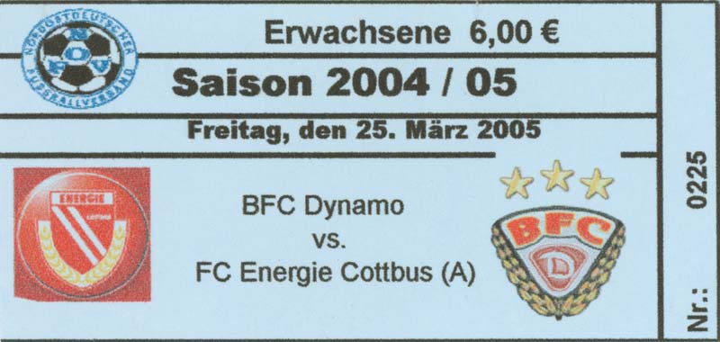 | 14. | 05.03.2005 | FSV Bernau B-Junioren () | 3:3 | FC Energie Cottbus C-Junioren |