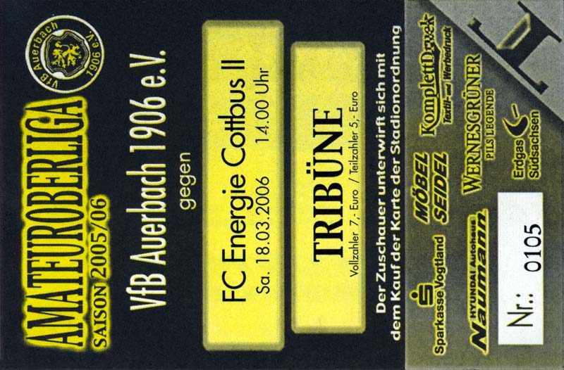 | 16. | 18.03.2006 | FC Energie Cottbus 2. C-Junioren | 14:3 | Eisenhüttenstädter FC Stahl C-Junioren () |