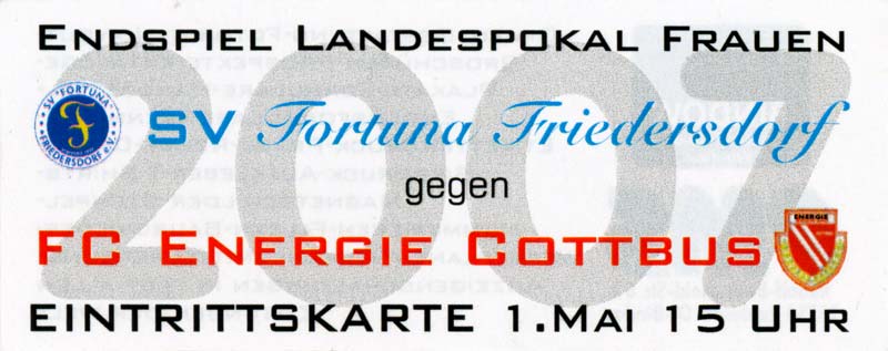 | 23. | 13.05.2007 | FSV Viktoria 1897 Cottbus A-Junioren () | 0:3 | FC Energie Cottbus 2. B-Junioren |
