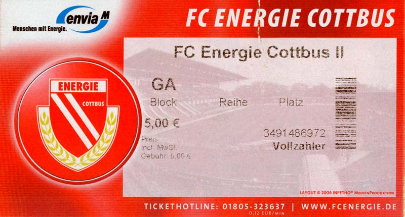 | 4. | 17.09.2006 | Ludwigsfelder FC A-Junioren () | 2:2 | FC Energie Cottbus 2. B-Junioren |