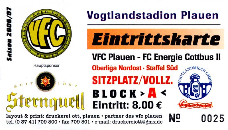 | 21. | 28.04.2007 | Oranienburger FC Eintracht 1901 C-Junioren () | 1:4 | FC Energie Cottbus 2. C-Junioren |