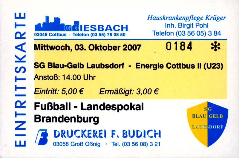 | 5. | 30.09.2007 | FC Energie Cottbus A-Junioren | 1:3 | Chemnitzer FC A-Junioren () |