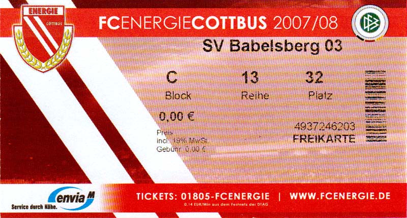 | 7. | 13.10.2007 | FC Energie Cottbus C-Junioren | 2:1 | FV Motor Eberswalde B-Junioren () |