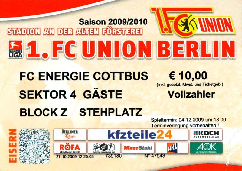 | 5. | 25.10.2009 | FC Energie Cottbus Frauen | 4:0 | FSV Union Fürstenwalde Frauen () |