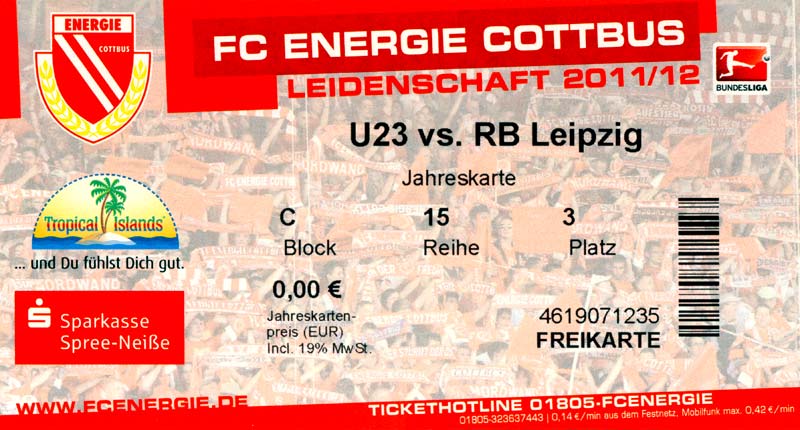 | 21. | 17.12.2011 | RasenBallsport Leipzig B-Junioren () | 0:1 | FC Energie Cottbus B-Junioren |