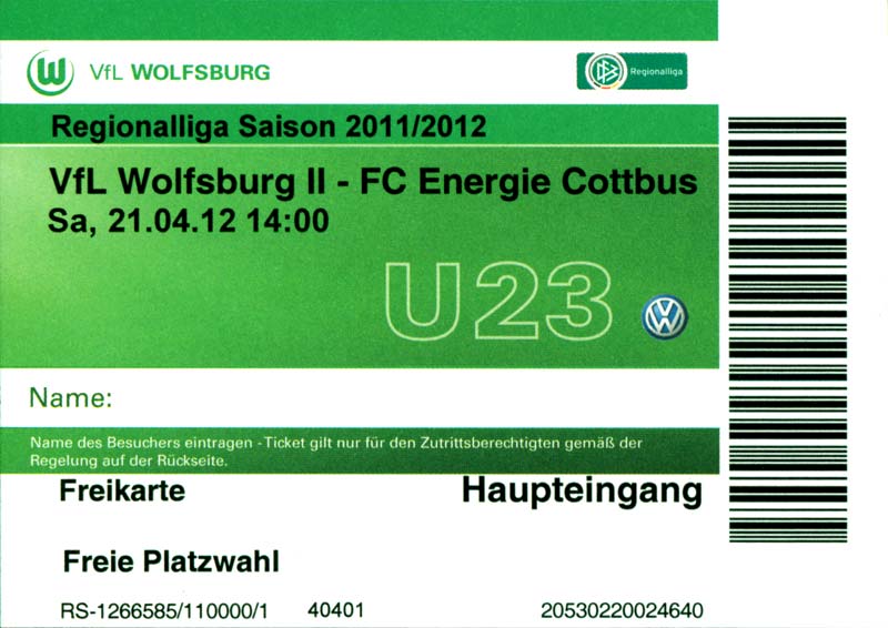| 17. | 04.03.2012 | FC Energie Cottbus B-Junioren | 1:5 | VfL Wolfsburg B-Junioren () |